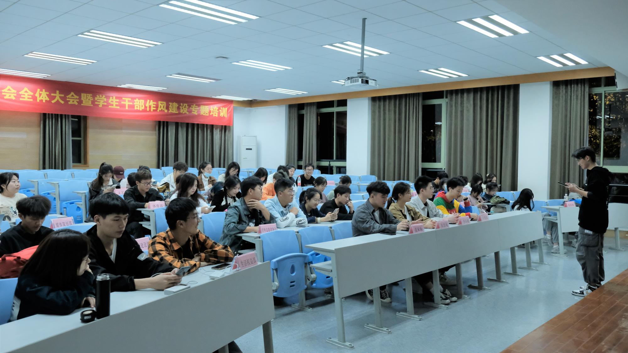 团委学生会会务及活动策划撰写培训在学院楼102教室展开,办公室负责人施彦昊同学主讲。他向大家介绍了小型会议会务工作流程,并对活动筹备的若干问题作出解答。结合不同会议的需要,他强调了会务前期准备工作、时间安排、会场布置及嘉宾席物品摆放的注意事项,为各部门今后开展会务工作理清了思路。
