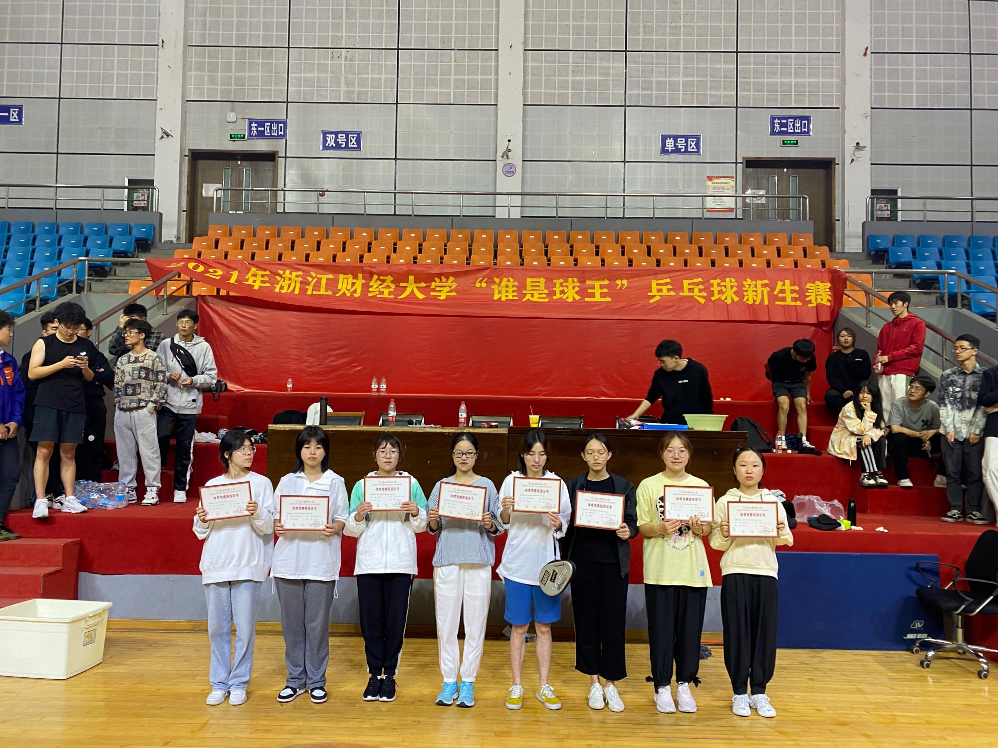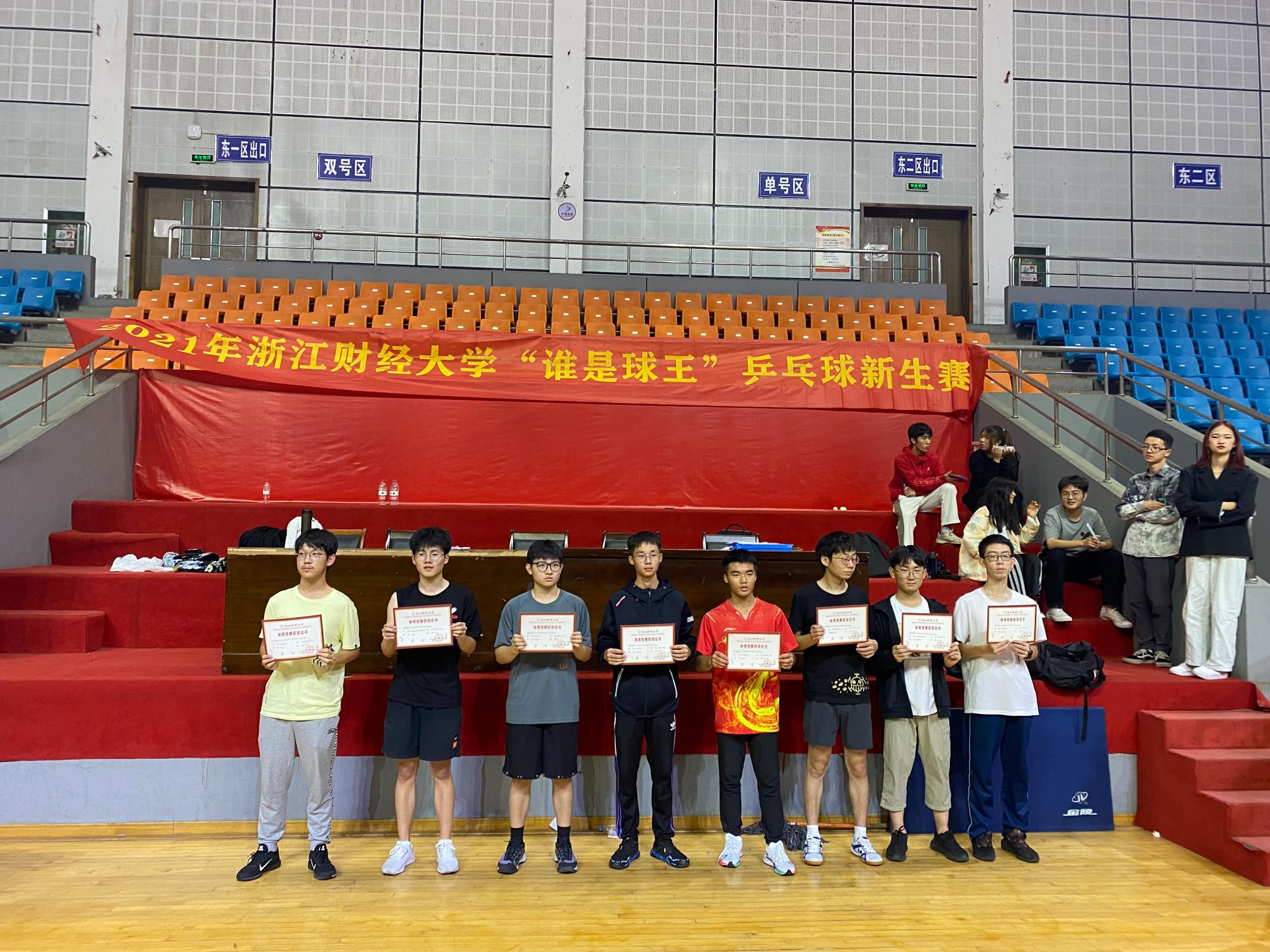 21金融4班邵戈天荣获男子乒乓球单项第一名,21金融6班陈宁轩荣获女子乒乓球单项第六名。