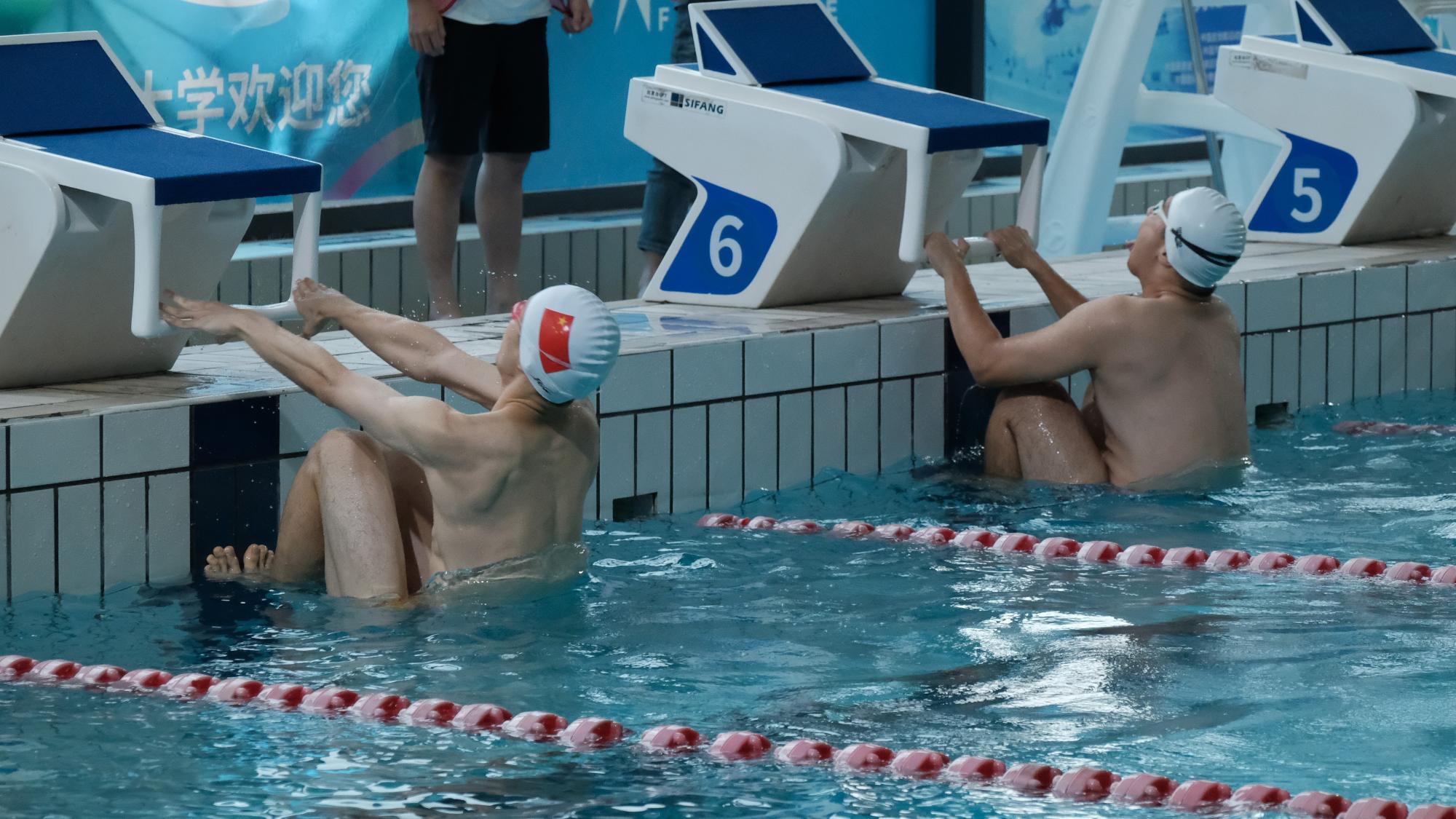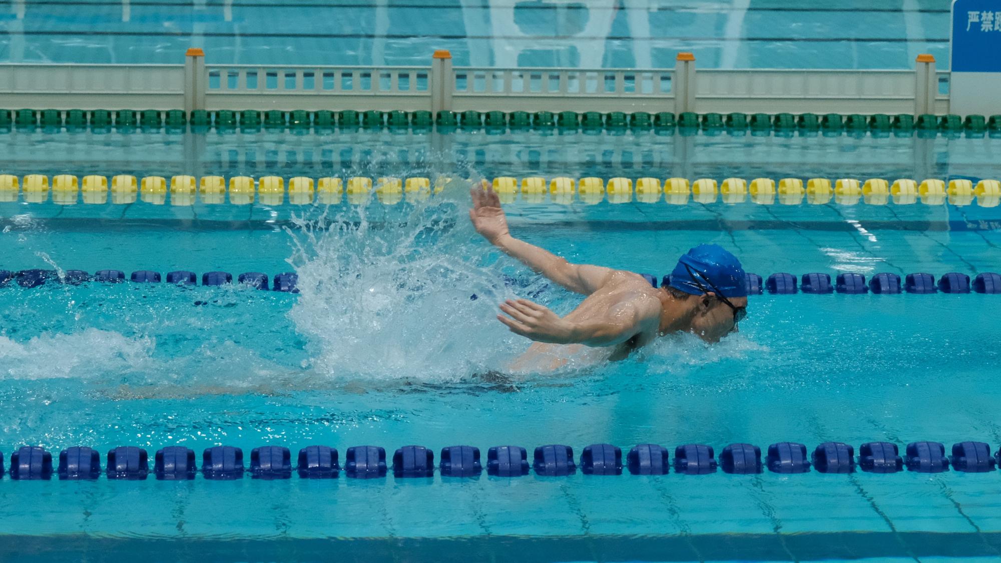 运动员们蓄势待发,只等裁判一声令下,起跳、入水、蹬腿、挥臂,一瞬间平静的泳池里水花翻滚,一呼一吸中,在竞速中感受心跳,在浪花中翻涌青春。
