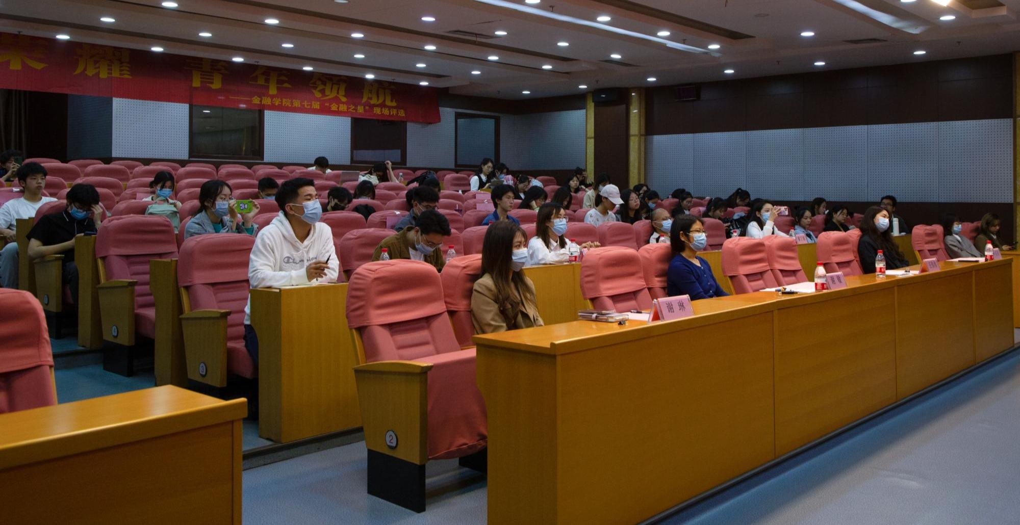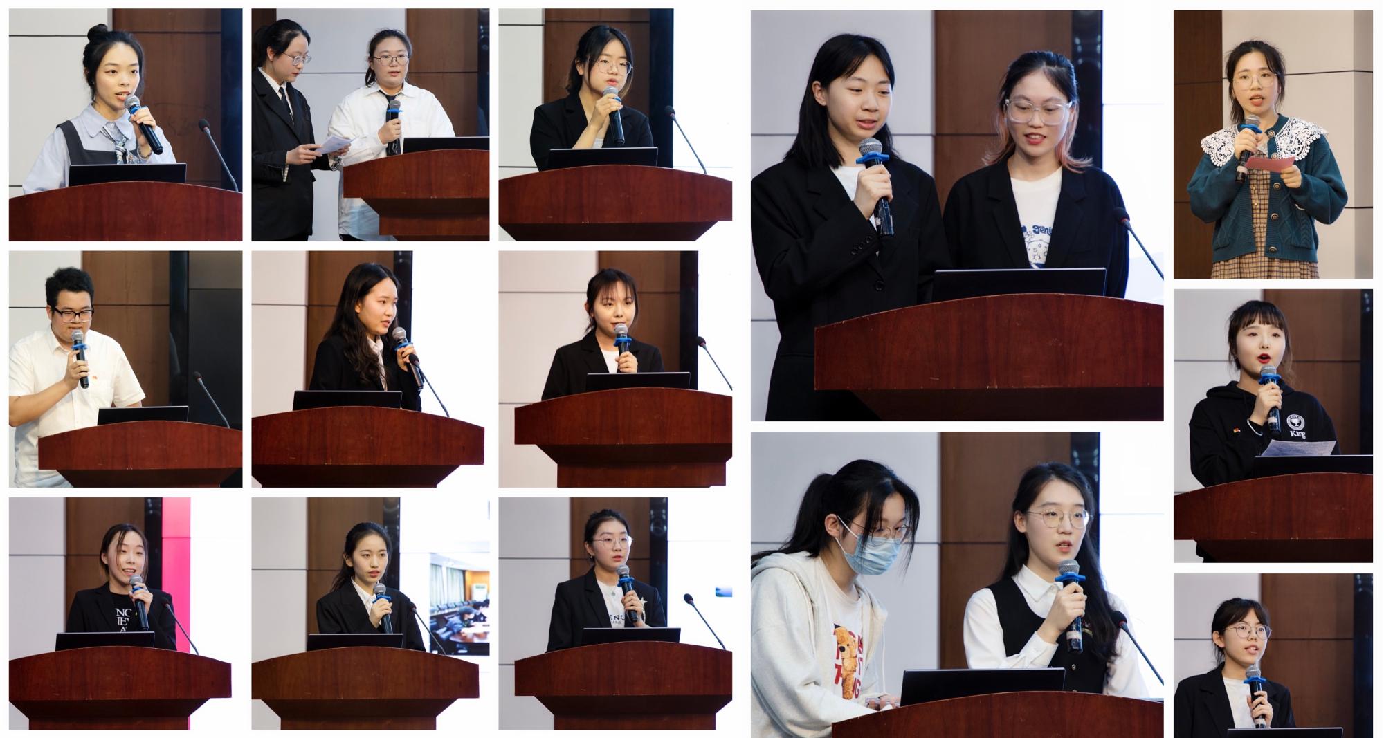 经个人(团体)申报、学院遴选初评,最终有15位候选人(团体)晋级现场展示。他们通过风采视频以及现场陈述,与大家分享了自己在学术竞赛、公益实践、学生工作、文体艺术等方面的突出事迹,他们精彩又热烈的青春故事赢得了现场观众的阵阵掌声,充分展示了金融学子积极向上、努力拼搏、团结奋进的青春力量!