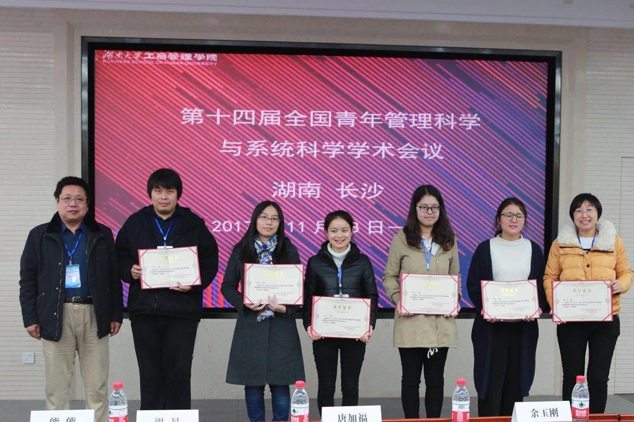 11月17日至19日,第十四届“全国青年管理科学与系统科学学术会议”在湖南大学召开。SF漫画 研究生杜和佳、周寒娴等同学应邀参加会议。杜和佳同学在会上报告的论文《互联网金融理财产品信用价差影响因素研究》荣获优秀论文。