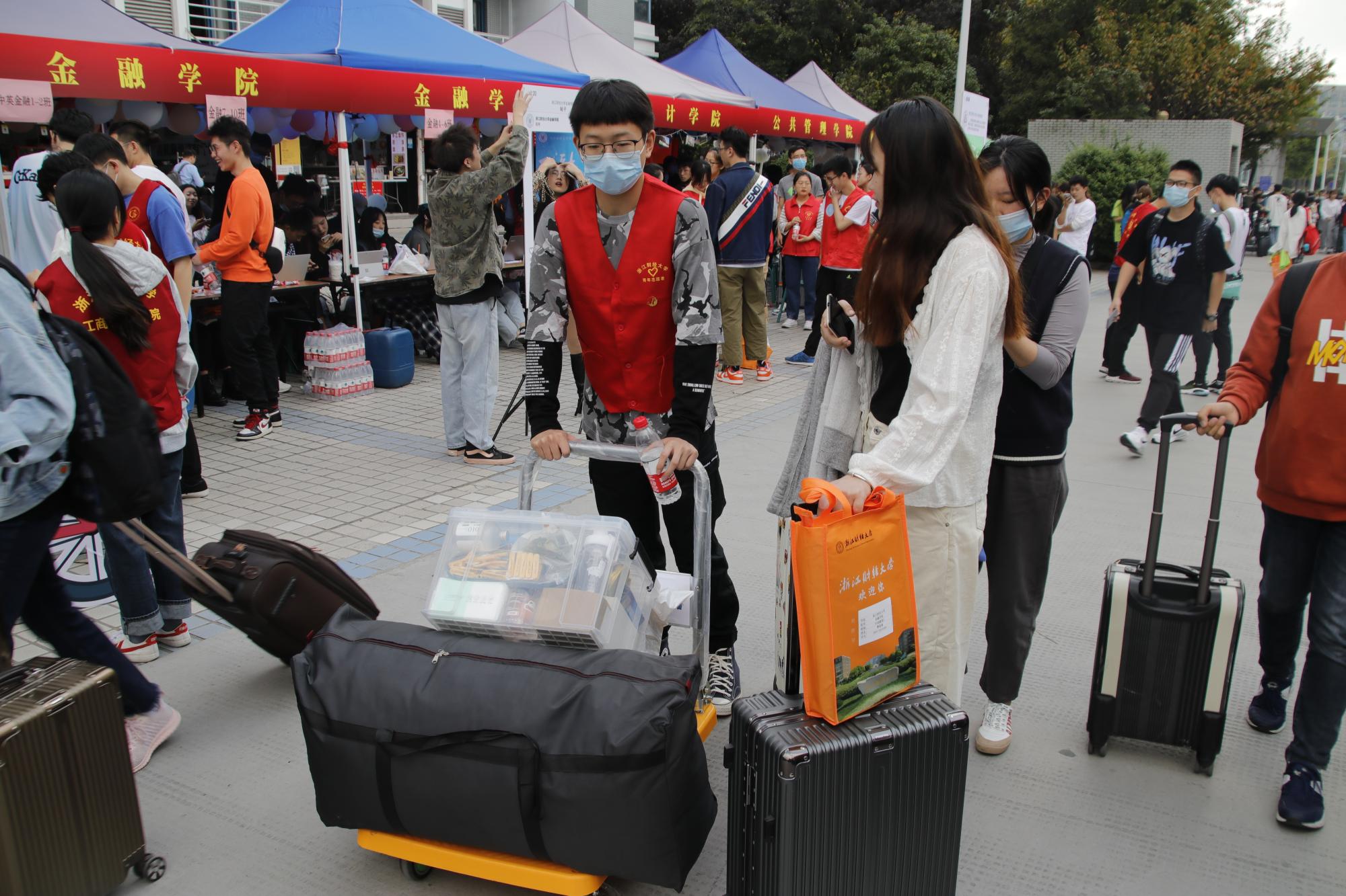 受疫情影响,今年新生家长无法进入校园陪同办理入学手续,学院专门招募了120余名本科与研究生志愿者参与了迎新工作,帮助新生运送行李,协助新生办理相关报到、入住手续。志愿者们提前到岗,佩戴口罩,有序工作,以热情洋溢的状态有条不紊的接待新生,做到了让学生满意,让家长放心。