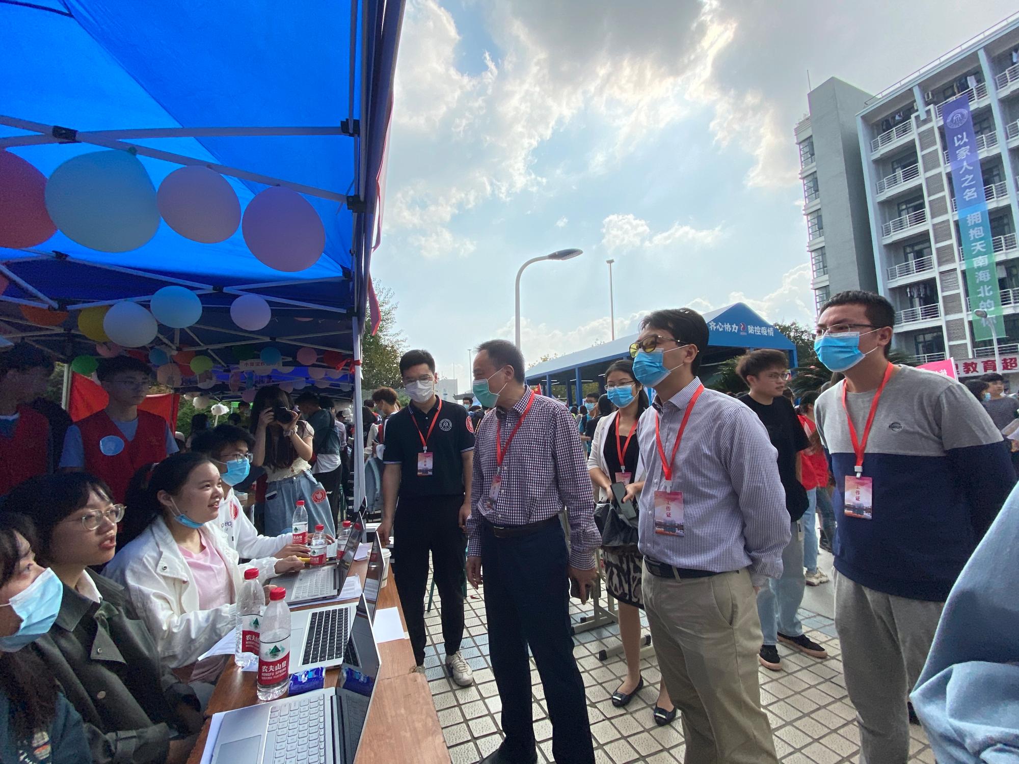 所在的成蹊苑迎新点深入了解新生报到、安全防控、氛围营造等相关工作,并对现场的工作人员表示了慰问。