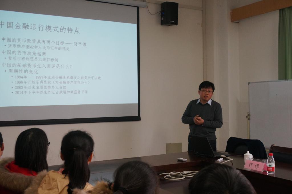 汪洋教授的报告内容丰富、深入浅出,让在座师生对当今中国金融运行模式面临的挑战有了全新的认识,为我校师生开展国际金融方面的学习与研究开拓了视野,提供了新思路。