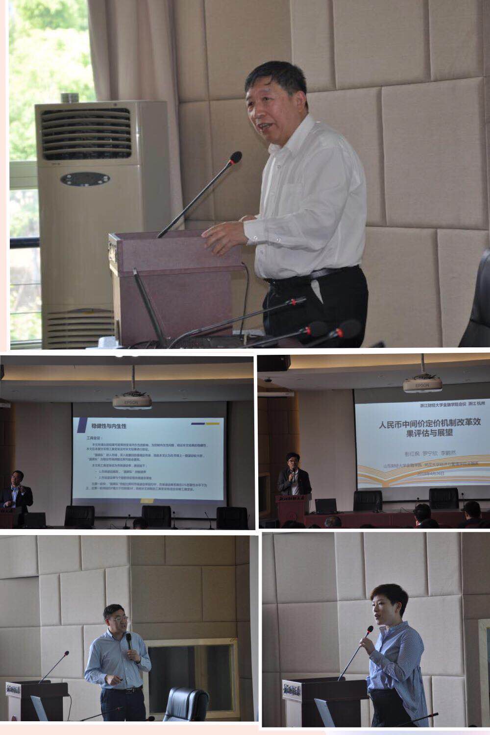 院长彭红枫教授作了题为“人民币汇率中间价调整政策评估与展望”的报告,彭教授主要介绍了2013—2017年人民币汇率中间价与汇率体系价格传导机制的变化过程:汇率体系的总体溢出指数上升,系统的联动效应增强,中间价来自其他汇率的溢出指数上升,中间价的市场化程度提高。但中间价对其他汇率的溢出指数在短暂上升后上下波动,汇改对中间价基准地位的提升作用有限。