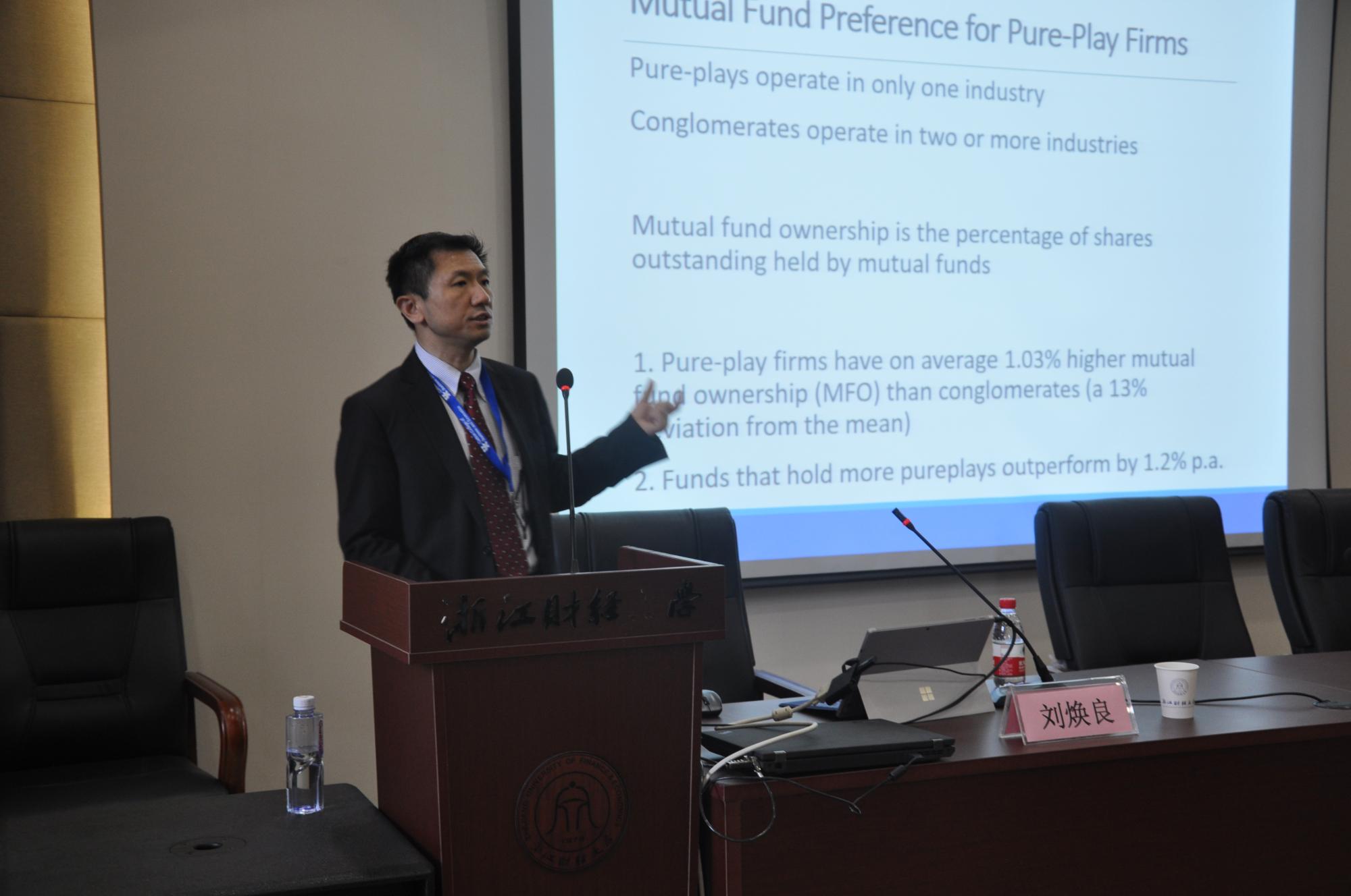 刘焕良教授主要就公司组织形式对共同基金投资的影响展开讨论。刘焕良教授通过研究发现,共同基金倾向于纯粹的公司而非综合企业。首先,他向我们介绍了如何解决内生性问题。随后,他解释了为什么会产生这样的偏好:因为通过持有纯粹的公司,共同基金可以将100%的资金投入到他们拥有专业知识的行业中,而投资综合公司则会稀释他们的投资。最后刘焕良教授表示,这项研究不仅记录了共同基金对纯粹公司的偏好,还添加了更多证据表明共同基金拥有不同角度的行业专业知识。