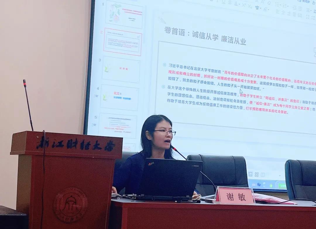 最后,谢敏副书记以“诚信廉洁亮底色 行稳致远保安全”为题,围绕学生行为准则和从业人员执业行为准则两个方面,结合青年学生思想特点和相关事例,讲述了学生坚持廉洁信念的重要性和必要性,为踏入大学新生活的同学们敲响警钟,嘱托同学们“明诚信,讲廉洁,重安全”,健康安全的度过研究生三年的时光。