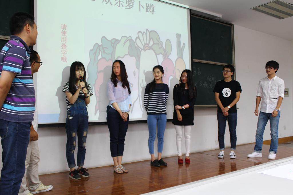 交流会开始之前,15级的部分新生在学长学姐的热心帮助下提前部署,为交流会准备了水果、糖果、话梅零食,又积极协助布置会场,营造出温馨愉快的交流氛围。下午2:30,交流会在15级两名主持人的热情解说中热烈开场。交流会共设十个环节。在第一环节中,我们给大家展示了陈荣达院长对新生的表示欢迎的一小段视频,让大家感受到学院对大家的欢迎和关注。第二环节13级所有在场优秀学长学姐依次向学弟学妹们介绍自己,热心细致,令人倍感亲切,顿时拉近了新老生之间的距离,此外还有几个14级的学长学姐也给和大家分享了他们研究生的学习生活。不少15级新生在学长学姐们的介绍中找到了自己的同乡或同门,可谓收获良多。