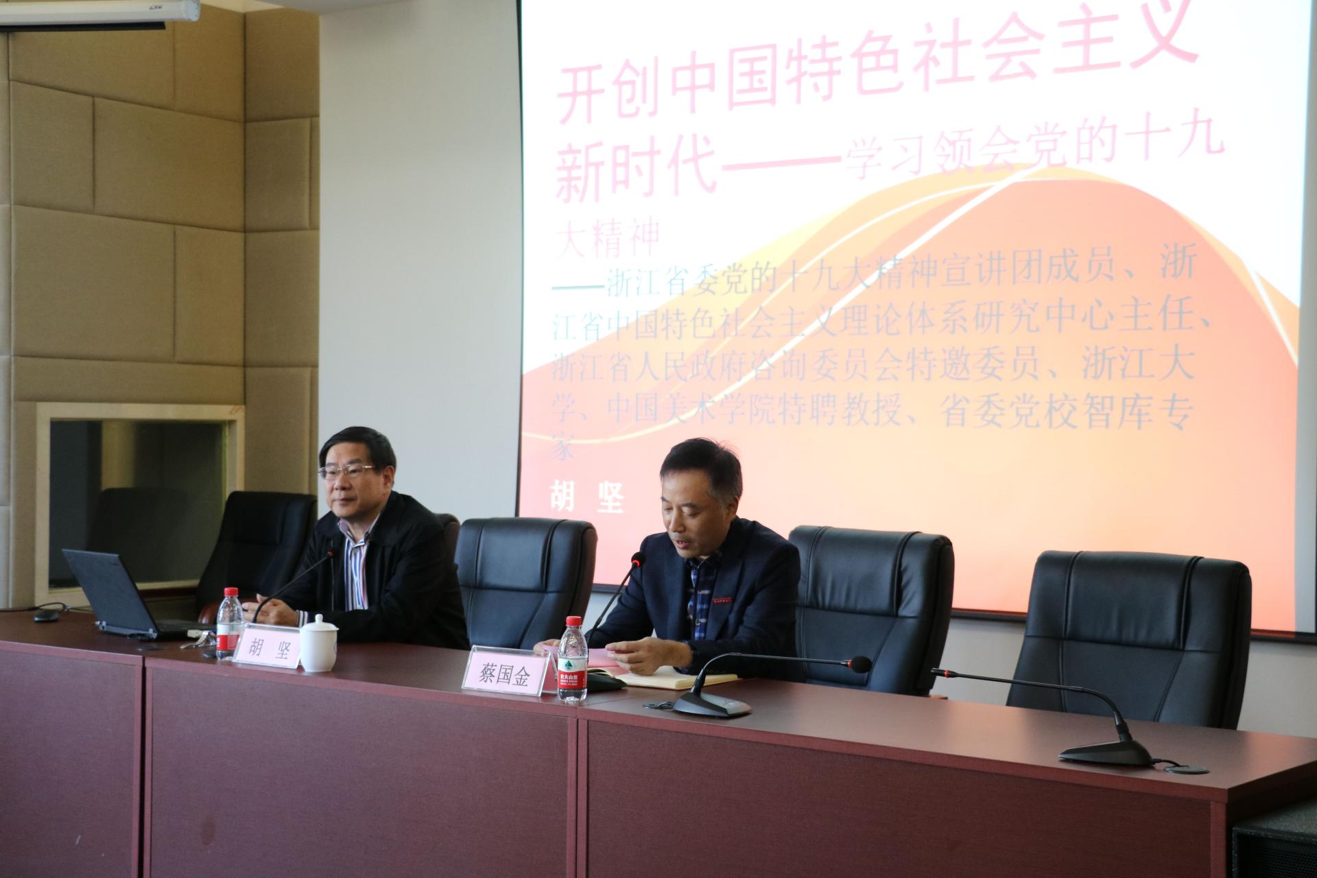 为深入学习宣传贯彻党的十九大精神,11月4日,SF漫画 党委特邀原浙江省委宣传部常务副部长胡坚,以“开创中国特色社会主义新时代——学习领会党的十九大精神”为主题进行专题辅导。学院全体师生党员聆听了本次党课,党课由学院党委书记蔡国金主持。