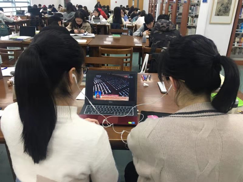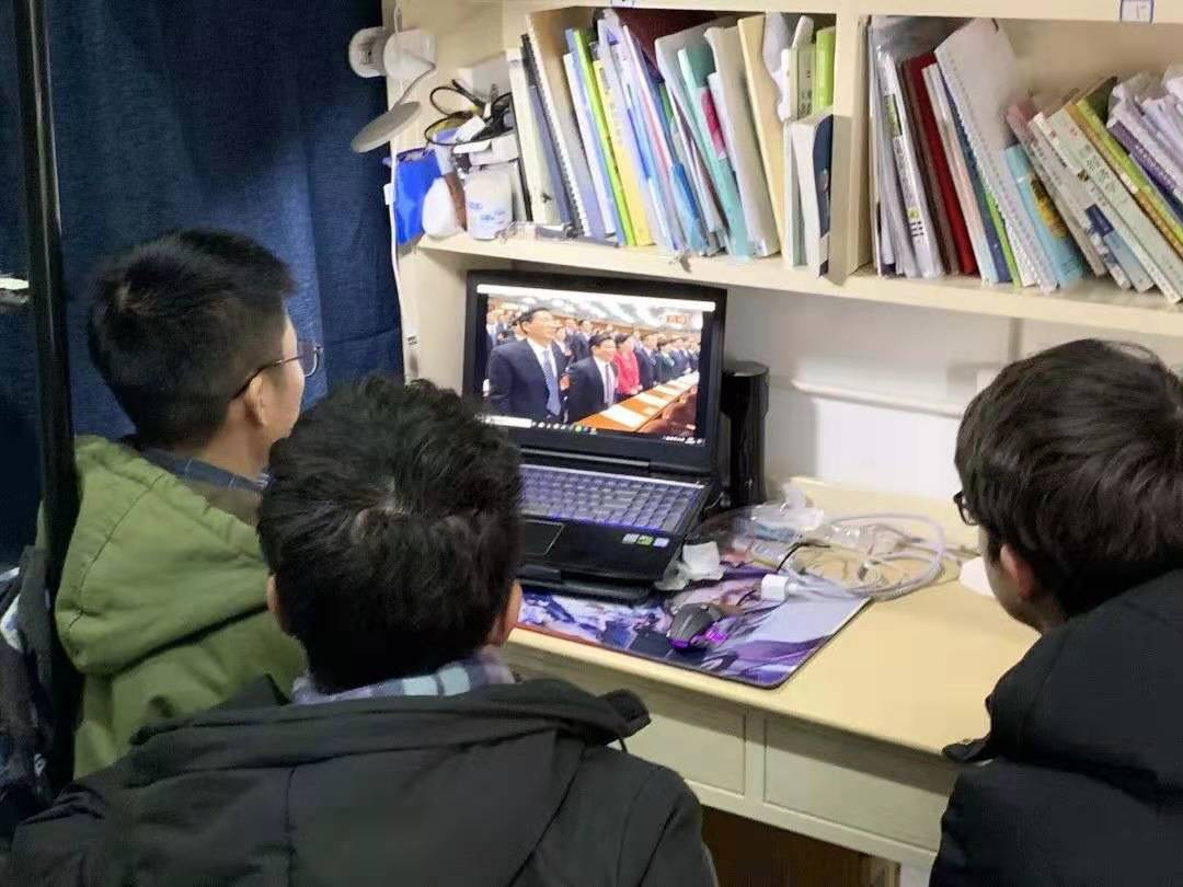 积极组织师生通过电视、网络、微信、客户端等多种渠道,及时收听收看大会盛况,掀起了学习两会精神的热潮。