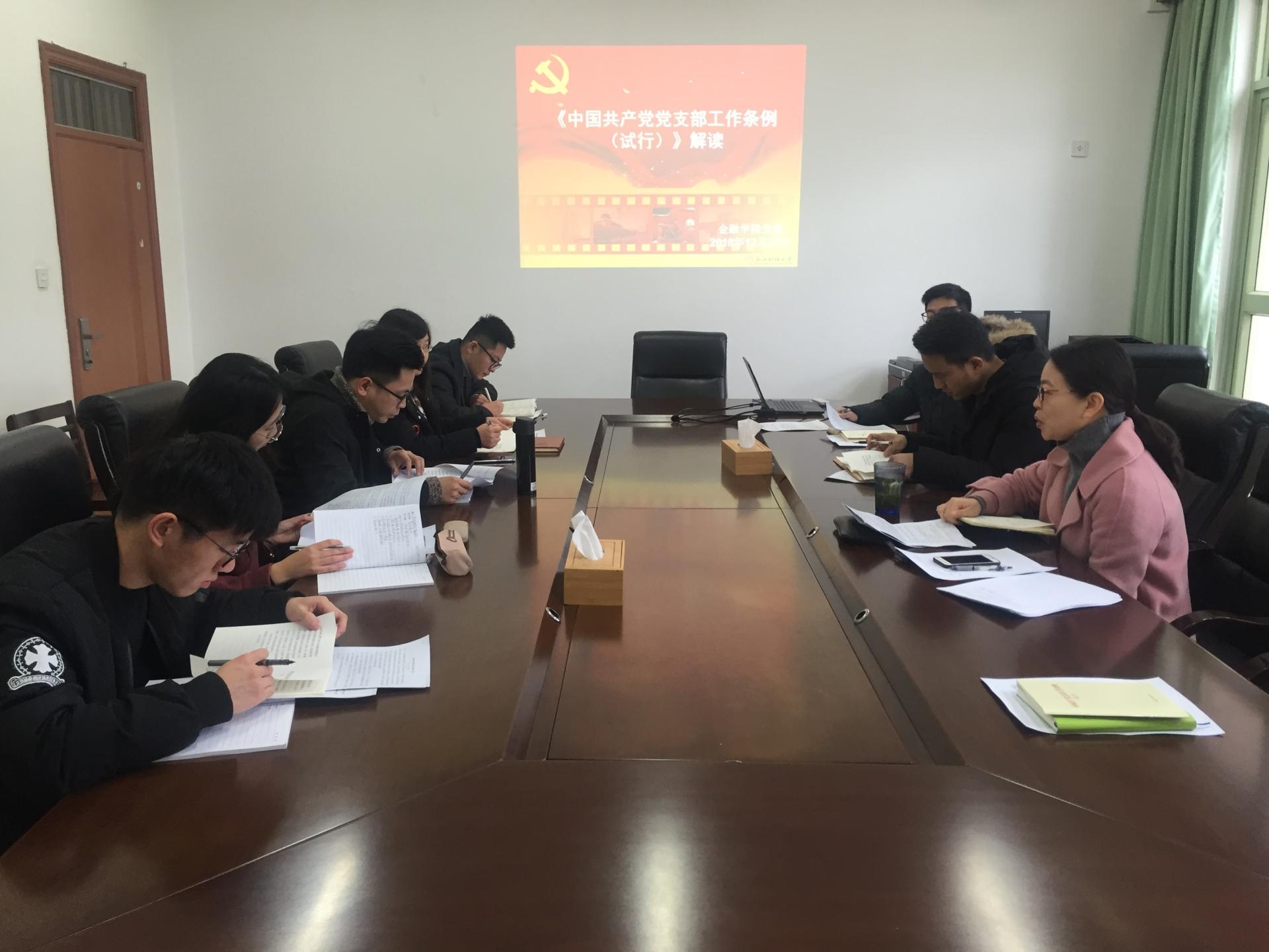 党委在党员之家召开党委会,就《中国共产党支部工作条例(试行)》进行了深入学习。学院党委书记蔡国金主持并带领全体党委委员对《条例》全文进行学习,结合下半年党建督查工作,重点解读了党支部组织设置、党支部工作机制等主要内容。同时学院党委还就学院各支部学习贯彻《条例》的工作进行了研究部署。
