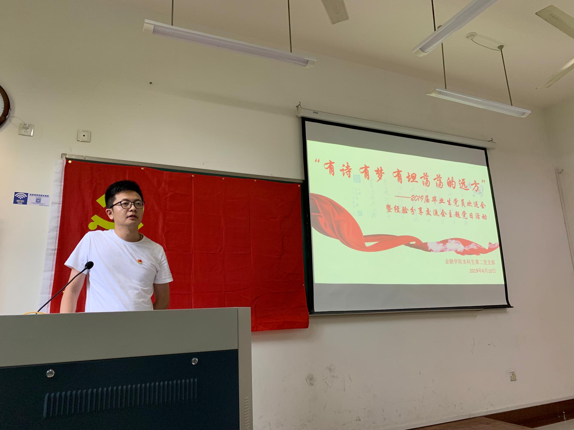 6月14日下午,学院党委副书记兼纪委书记叶秀在3号楼102教室对即将走向工作岗位的毕业生党员进行集体座谈,从政治纪律、组织纪律、廉洁纪律、工作纪律、生活纪律五个方面对毕业生党员提出希望和要求,并结合自身体会、金融行业实际以及鲜活案例,为毕业生党员敲响警钟。叶书记强调,每一位毕业生党员都要做到政治素养过硬、组织纪律严明、工作认真负责、生活作风端正、注重党性修养,将廉政意识牢记在心;牢记“进德修业,与时偕行”的校训,以党章党规明确标准,以习近平总书记系列重要讲话精神武装头脑,不忘初心,牢记使命,砥砺前行。