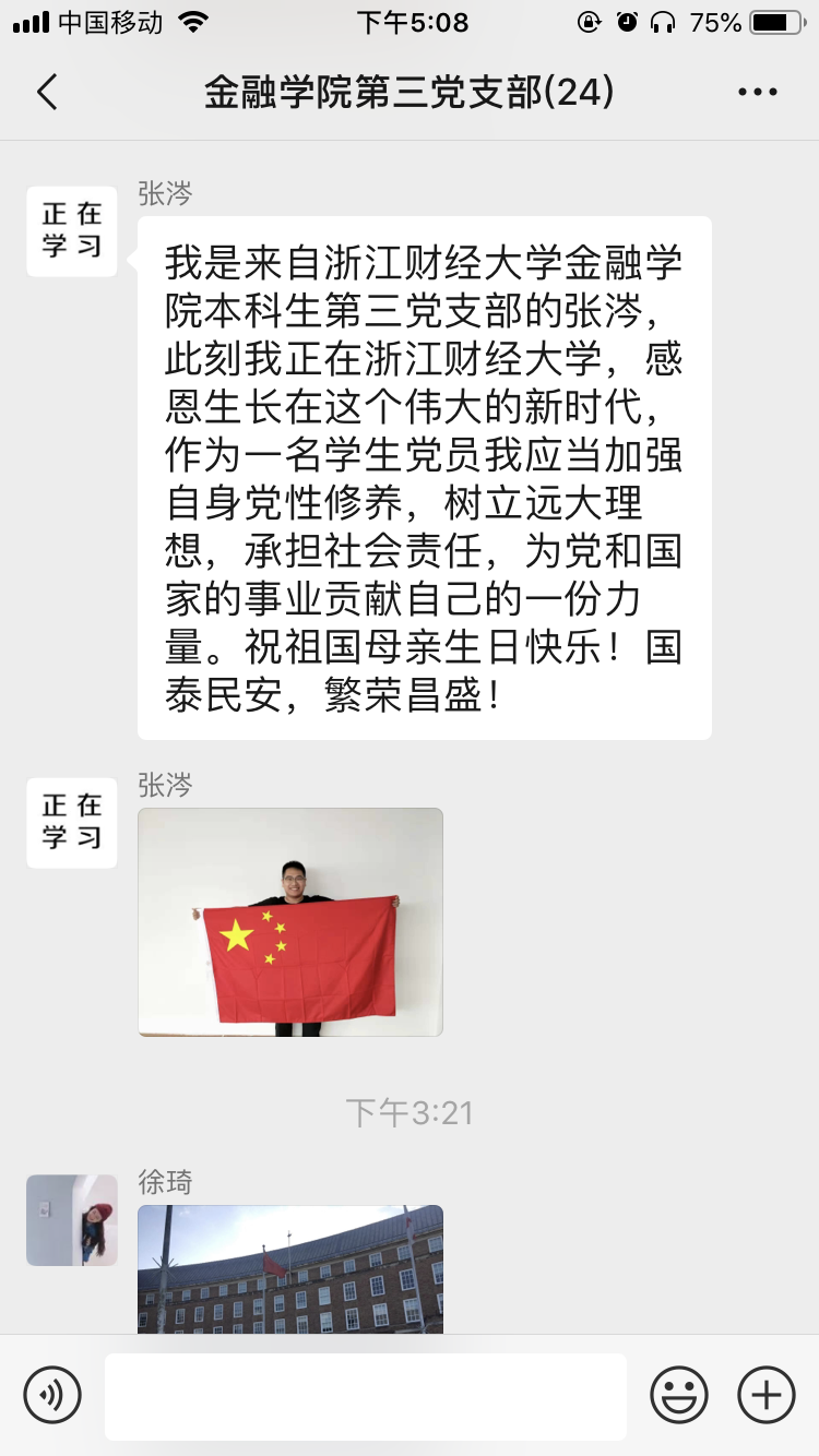 此外,支部在线上还开展了“我与国旗的合影 ”活动,党员们在自己生活的地方与国旗合影,并为祖国母亲送上美好的祝愿,感恩自己生长在这个伟大的新时代。