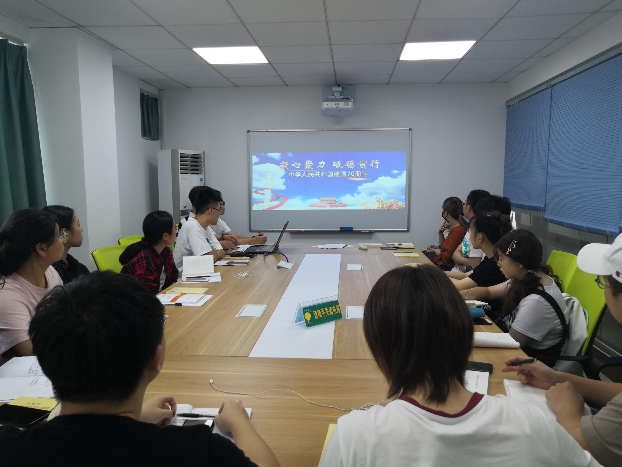 在迎接新中国成立 70 周年之际,支部举行“凝心聚力 砥砺前行”庆祝中华人民共和国成立70周年主题党日活动.党支部书记沈耀杰带领党员观看《中华人民共和国70周年》视频,回顾七十年的砥砺前行,并针对性地对学生党员进行人生规划探讨。同时,积极开展“不忘初心 牢记使命”主题教育学习会,认真学习贯彻习近平总书记重要指示精神和中央部署要求。要求全体支部党员高举习近平新时代中国特色社会主义思想伟大旗帜,以一言一行感染身边人,不忘初心、方得始终,牢记使命、方能致远。此外,支部党员秉承“学习强国 共赢发展”的理念,进行“学习强国APP”使用心得交流。本科生第二党支部党员积极扩大知识储备量,加强思想武装,做到忠诚有担当,为新中国成立70周年献礼!