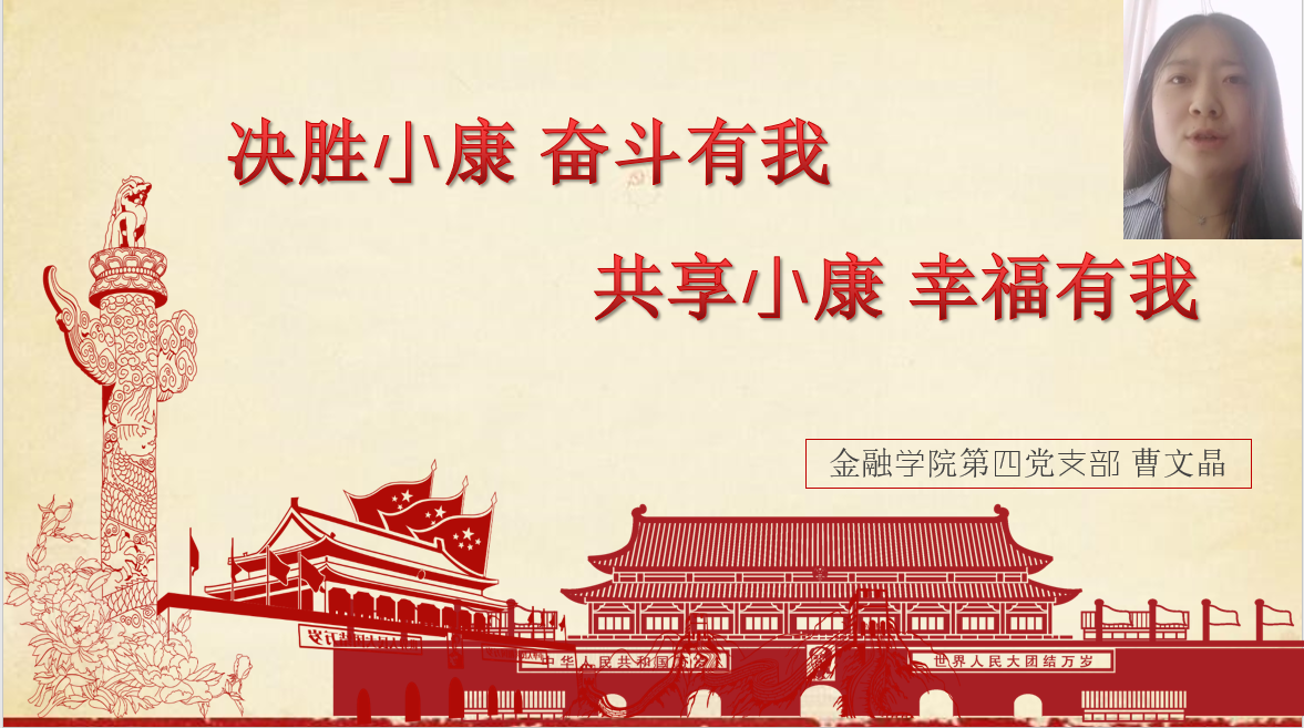 本科生第四党支部曹文精同学从家乡的变化,思考作为一名大学生可以在脱贫攻坚战中作出哪些贡献,才能在火热的青春中放飞人生梦想,在拼搏的青春中成就事业华章。