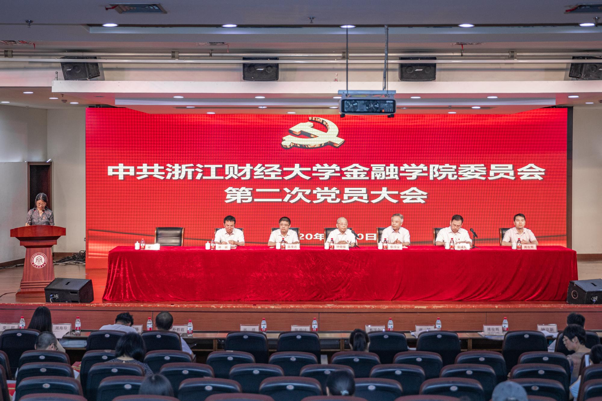 大会通过了党委工作报告、纪委工作报告、选举办法、监计票人名单。按照选举办法和规定程序,全体到会正式党员以无记名投票的方式,选举产生了金融学院新一届党委委员(按姓氏笔画为序):朴哲范、林祺、金骋路、钟立新、谢敏、傅俊辉、蔡国金;新一届纪委委员(按姓氏笔画为序):叶谦、叶玲君、徐敏、徐峰、谢敏。