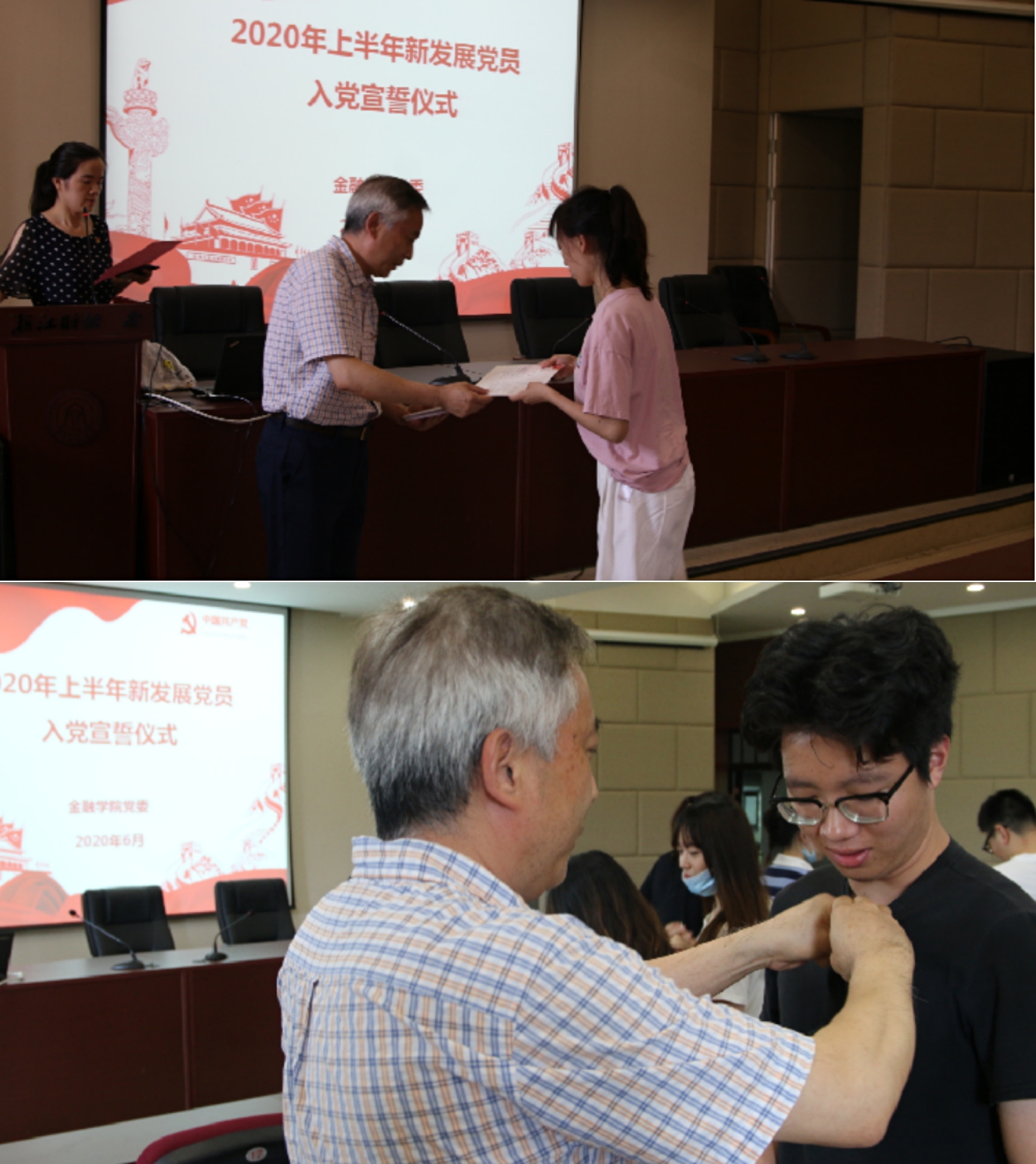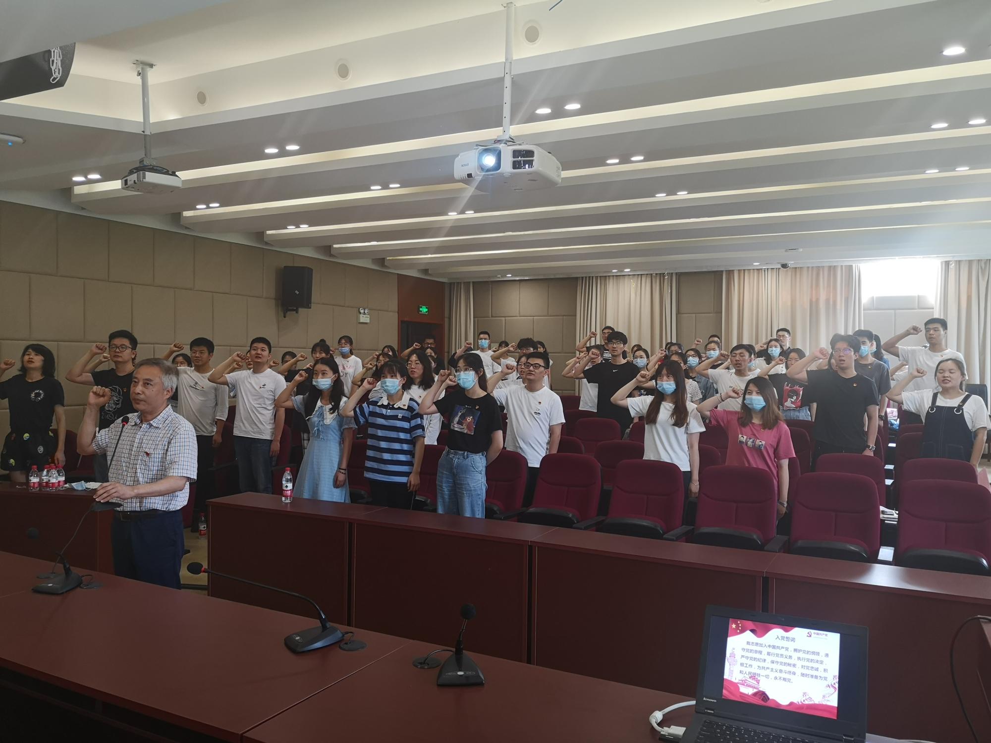 6月28日下午,SF漫画 2020年上半年新发展党员入党宣誓仪式在SF漫画 楼202报告厅隆重举行。学院党委书记蔡国金、专职组织员翟丽媛、各学生党支部书记、支委以及全体新发展党员参加了本次活动。