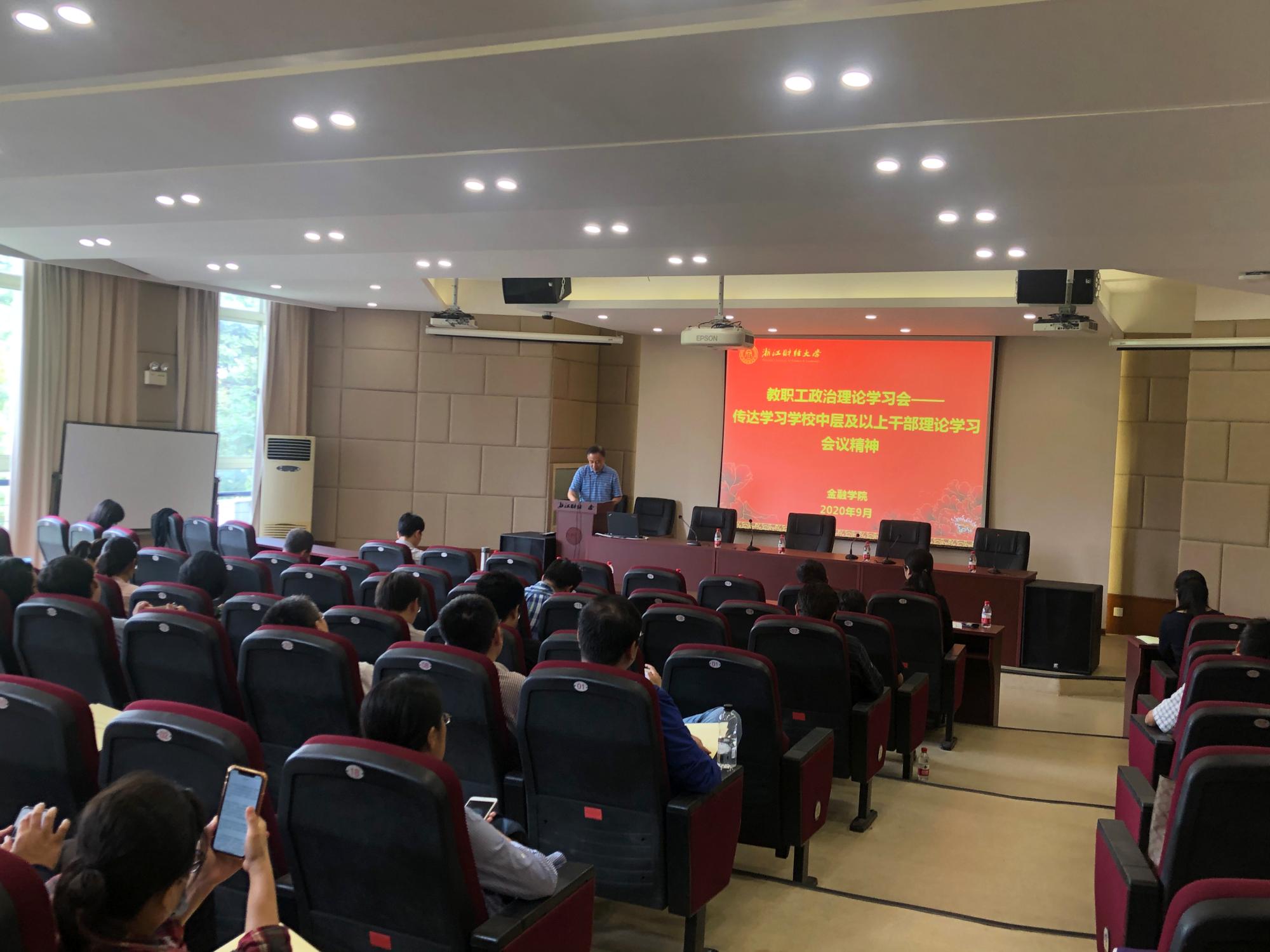 9月29日下午,SF漫画 在3-202报告厅召开教职工政治理论学习会,专题学习省委书记袁家军在省委党校秋季学期开学典礼上的讲话精神,以及传达学习学校中层及以上干部理论学习会议精神。会议由党委书记蔡国金主持。