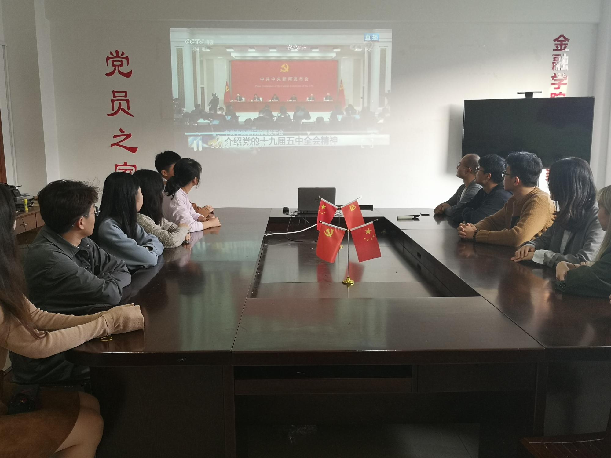 在全院教职工政治理论学习会上,学院党委书记蔡国金领学了党的十九届五中全会公报亮点内容,传达了会议精神。他指出,十九届五中全会意义重大,是我国“十三五”规划目标任务即将完成、全面建成小康社会胜利在望、全面建设社会主义现代化国家新征程即将开启的重要历史时刻召开的一次具有开创性、里程碑意义的会议。全会提出了“十四五”时期经济社会发展目标,为我们今后的工作指明了方向,提出了要求。他强调要深刻认识党的十九届五中全会全局性、历史性的重大意义,学习宣传贯彻好十九届五中全会精神,是当前的一项重大政治任务,各党支部要迅速部署落实,把学习贯彻党的十九届五中全会精神作为党员党内生活的重要内容,大家要提高认识、统一思想,明确任务,紧扣忠实践行“八八战略”、奋力打造“重要窗口”主题主线,以实际行动扎实推进学院各项工作再上新台阶。