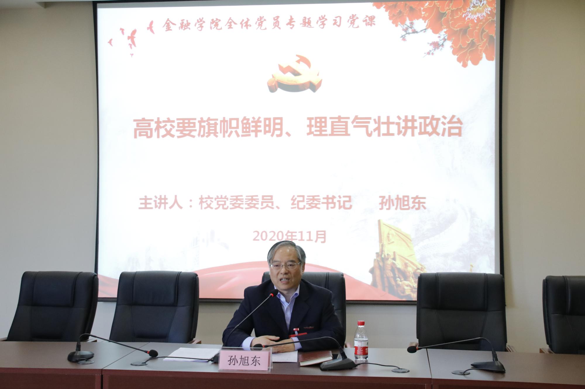 委员会党员大会在3号学院楼202报告厅顺利召开。校党委委员、纪委书记孙旭东以《高校要旗帜鲜明、理直气壮讲政治》为题给全体党员上了一堂严谨而生动的微党课。