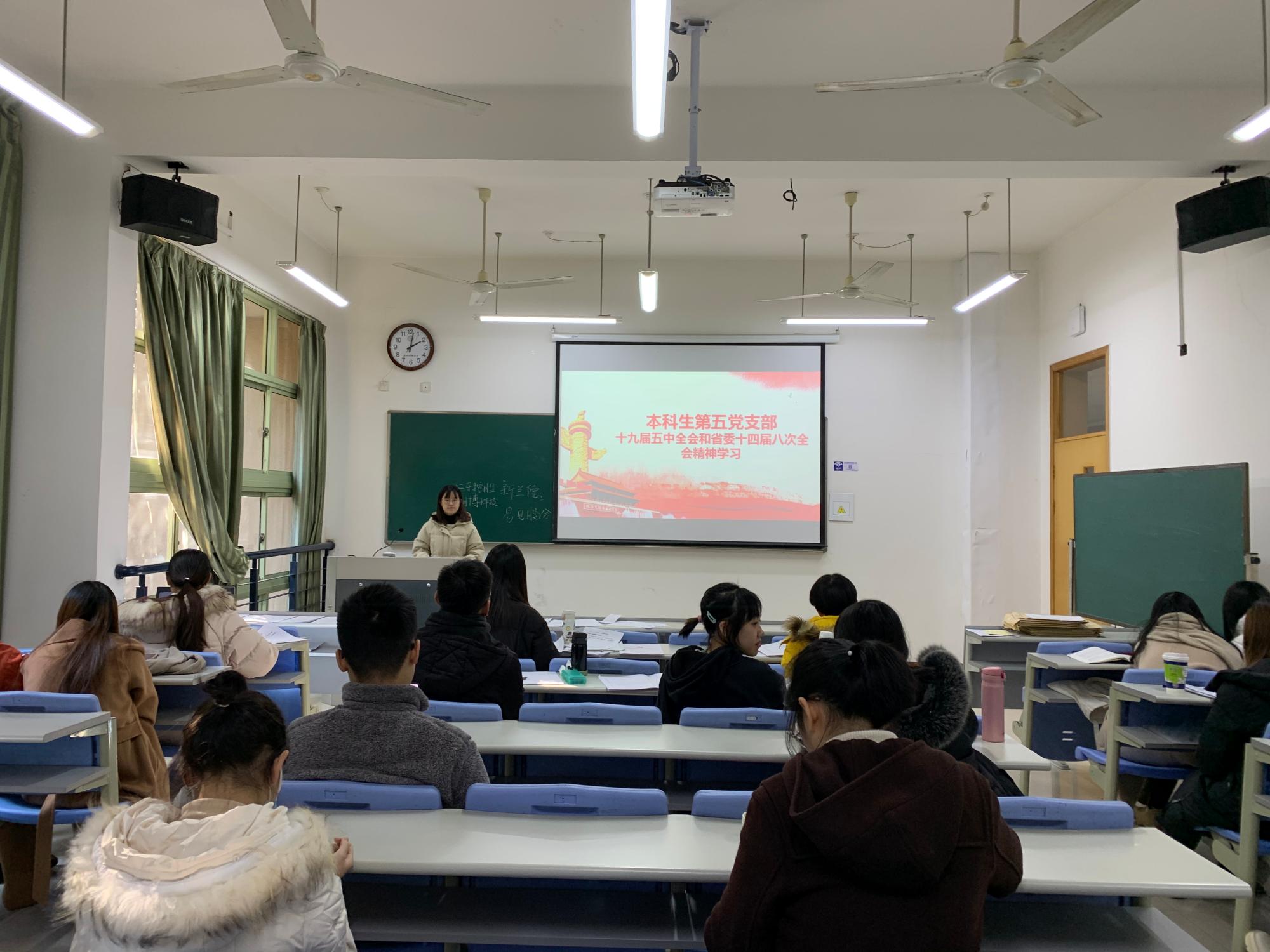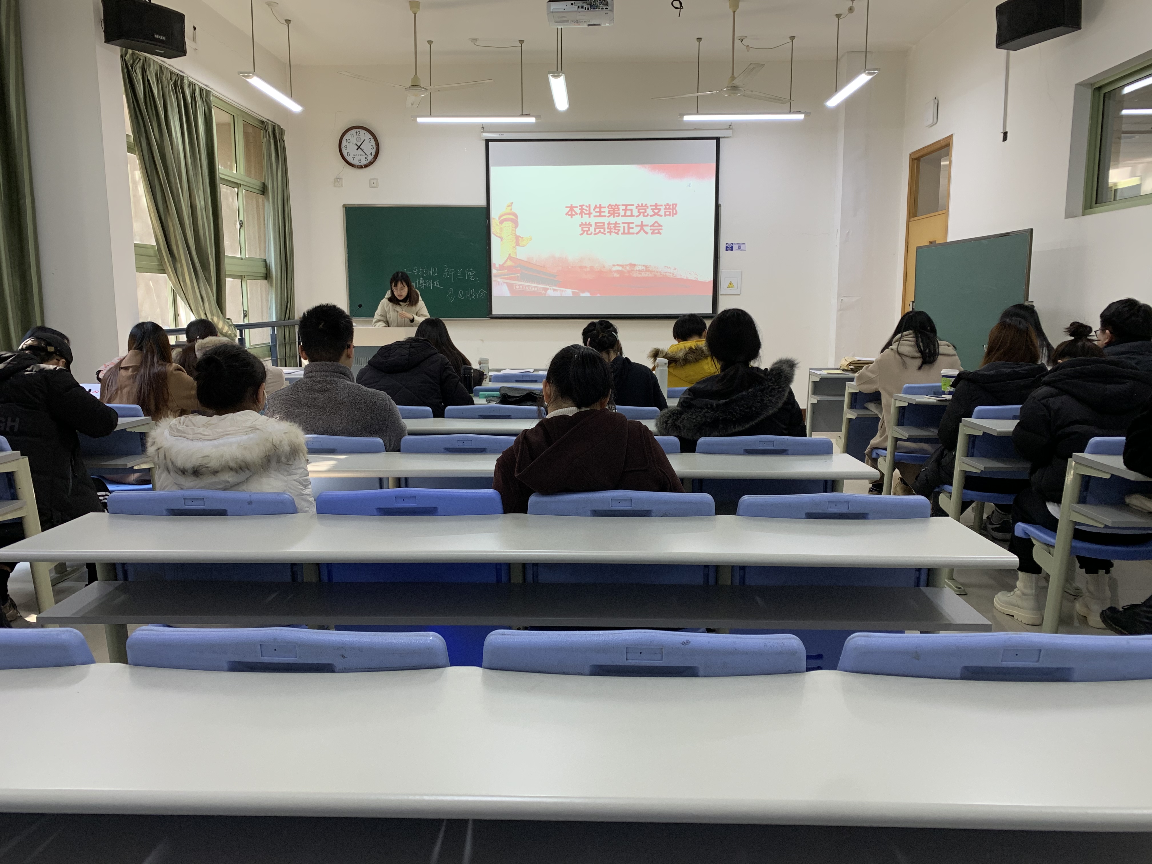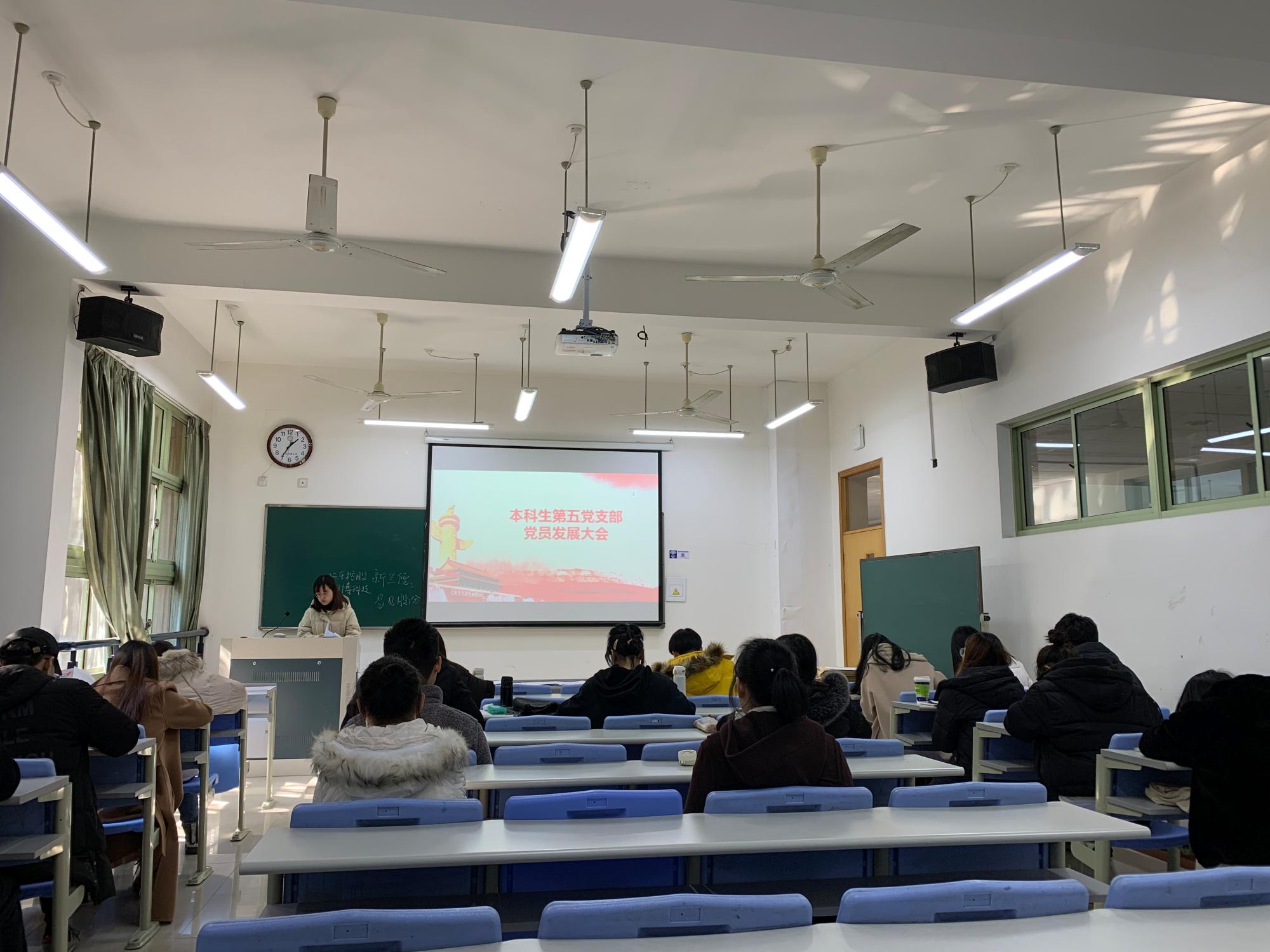 本科生第五党支部于2020年12月12日召开了本科生第五党支部党员转正、发展大会暨专题学习党的十九届五中全会和省委十四届八次全会精神会。大会主要议程包括:讨论蔡雨晴等4名预备党员同志转正问题,讨论接收程正达等10名同学为预备党员问题。支部全体正式党员、预备党员、本次发展对象参加了此次大会。本次大会由本科生第五党支部书记沈晓云同志主持。