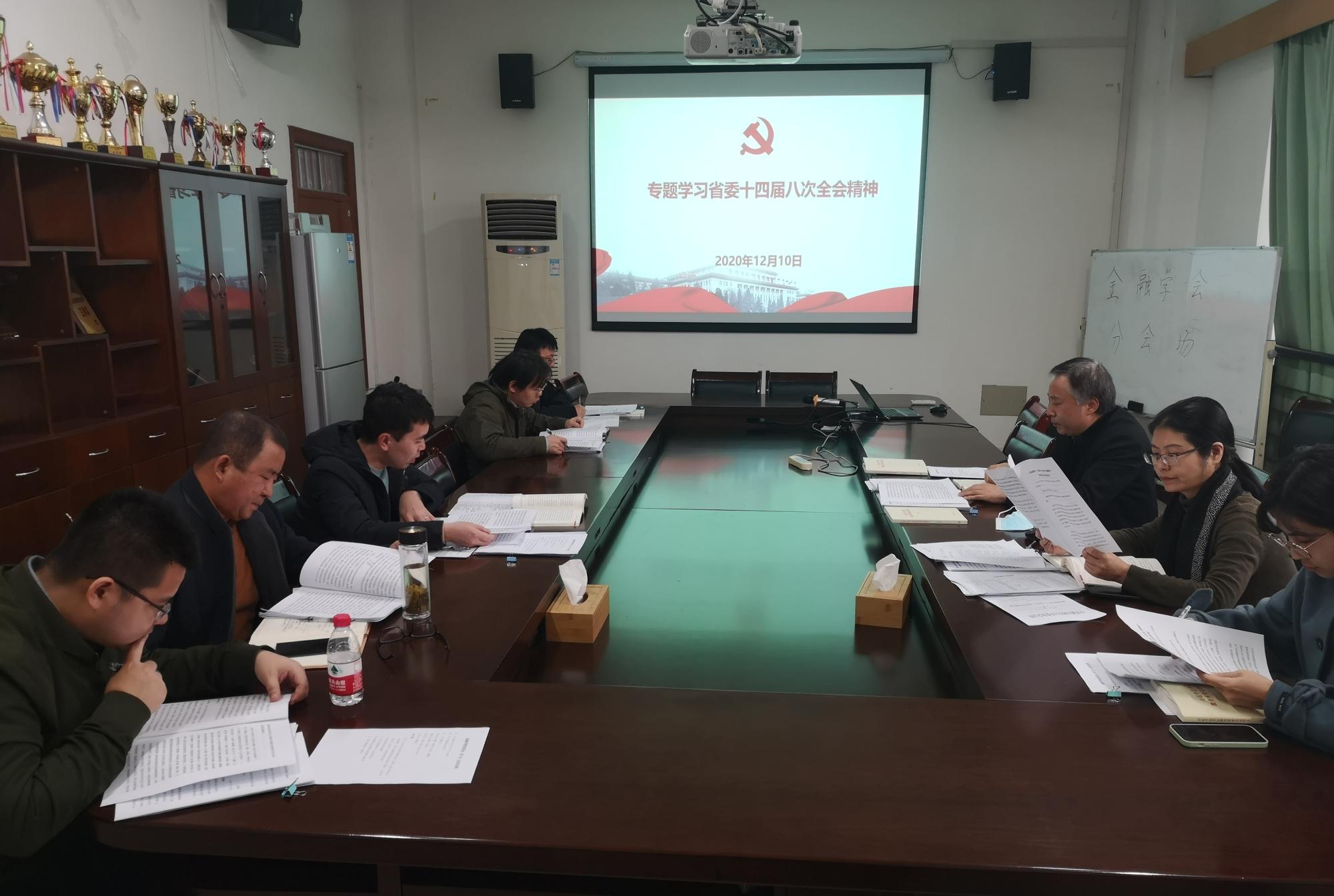 党委委员、副院长傅俊辉带领全体与会人员学习了袁家军书记在会上代表省委常委会所作的工作报告和省委十四届八次全会审议通过的《关于制定浙江省国民经济和社会发展第十四个五年规划和2035年远景目标的建议》等文件的重要精神。并表示我们要把学习贯彻落实省委全会精神与学习贯彻落实党的十九届五中全会精神紧密结合起来,学深悟透、融会贯通、知行合一、务求实效。