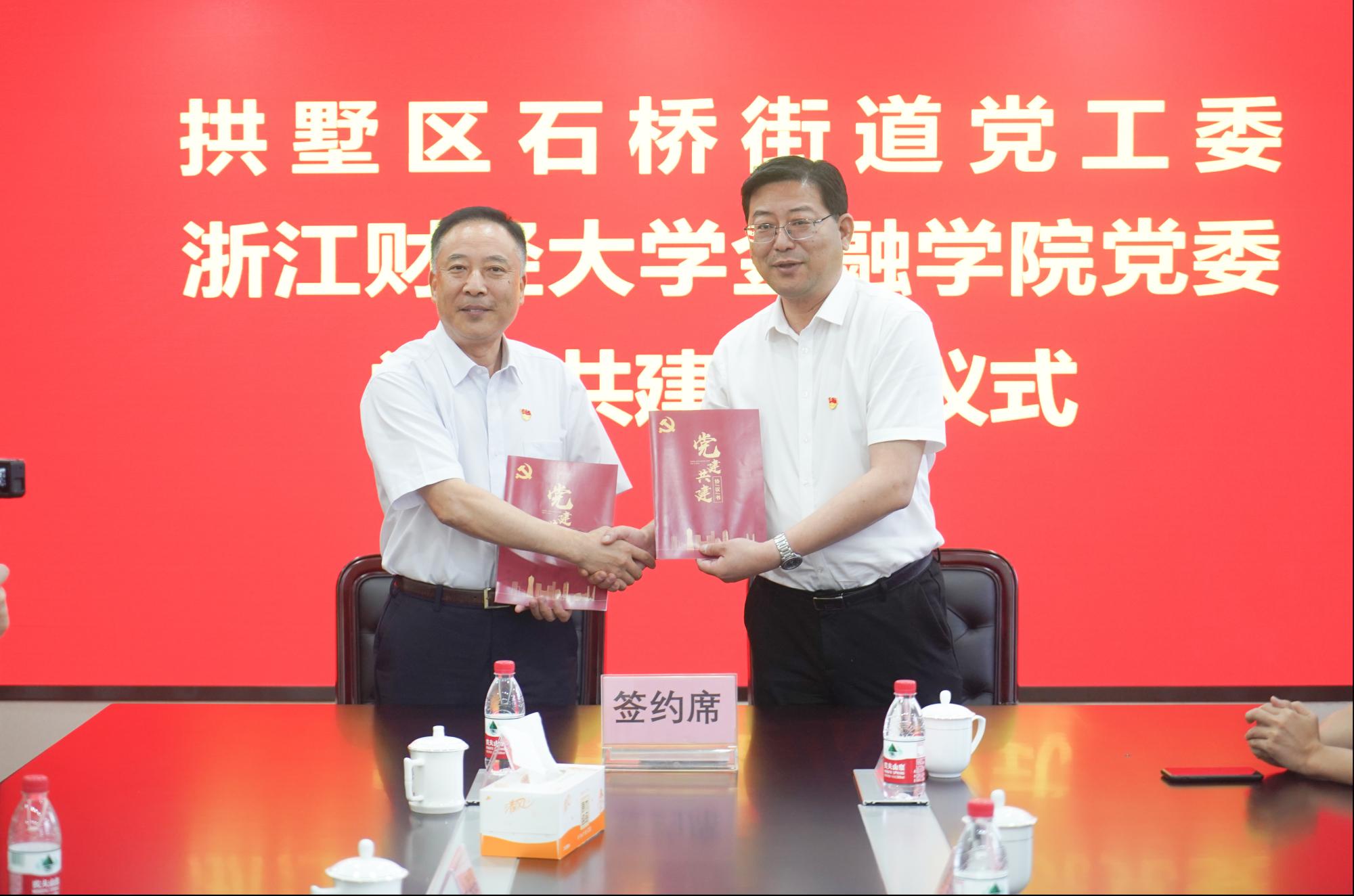 党委书记蔡国金与石桥街道党工委书记姜利民分别代表双方签订党建共建协议。