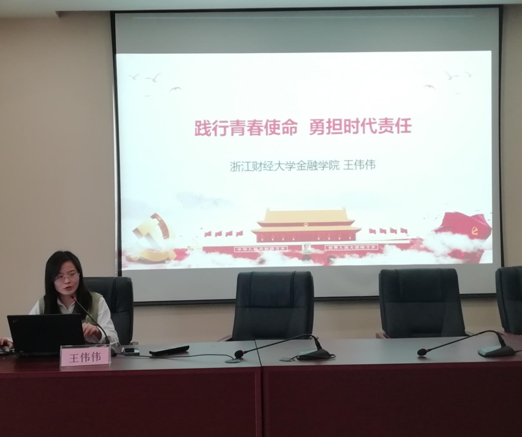王伟伟老师以《践行青春使命,勇担时代责任》为题,围绕“青年时期的特殊性、马克思主义青年观、历史上的青年运动及当代青年的使命与担当”这四个方面来讲述青年的力量与重要性,号召在座的入党申请人应树立远大理想、热爱伟大祖国、担当时代责任、勇于砥砺奋斗、练就过硬本领、锤炼品德修为。王老师将党课内容与党史学习教育紧密结合,倡导大家要有理想,有抱负,有追求,勇于担当,脚踏实地,为中华民族的伟大复兴贡献自身的力量与价值。