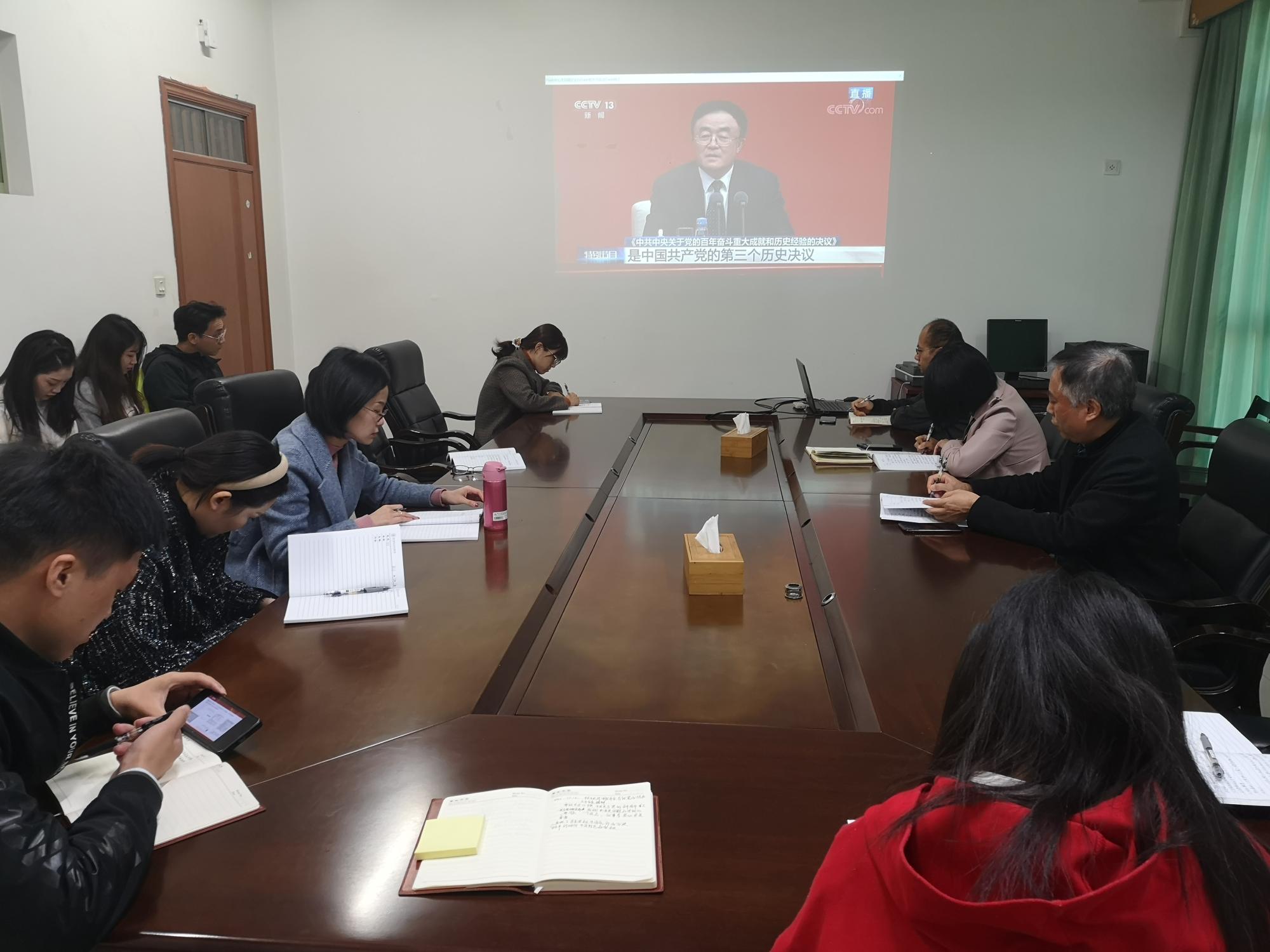 党委积极组织全体师生党员通过多种形式收听收看全会现场直播,并通过报纸网络等形式认真学习《中国共产党第十九届中央委员会第六次全体会议公报》全文,认真学习领会党的十九届六中全会精神,分享、交流心得感悟。