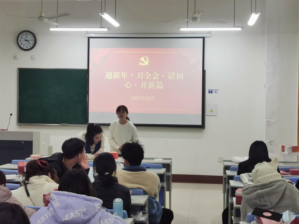 本科生第五党支部组织“迎新年,习全会,话初心,开新篇”主题党日活动,活动上特设“学习党的十九届六中全会精神”知识竞赛和“慢递”环节,支部全体党员参加。