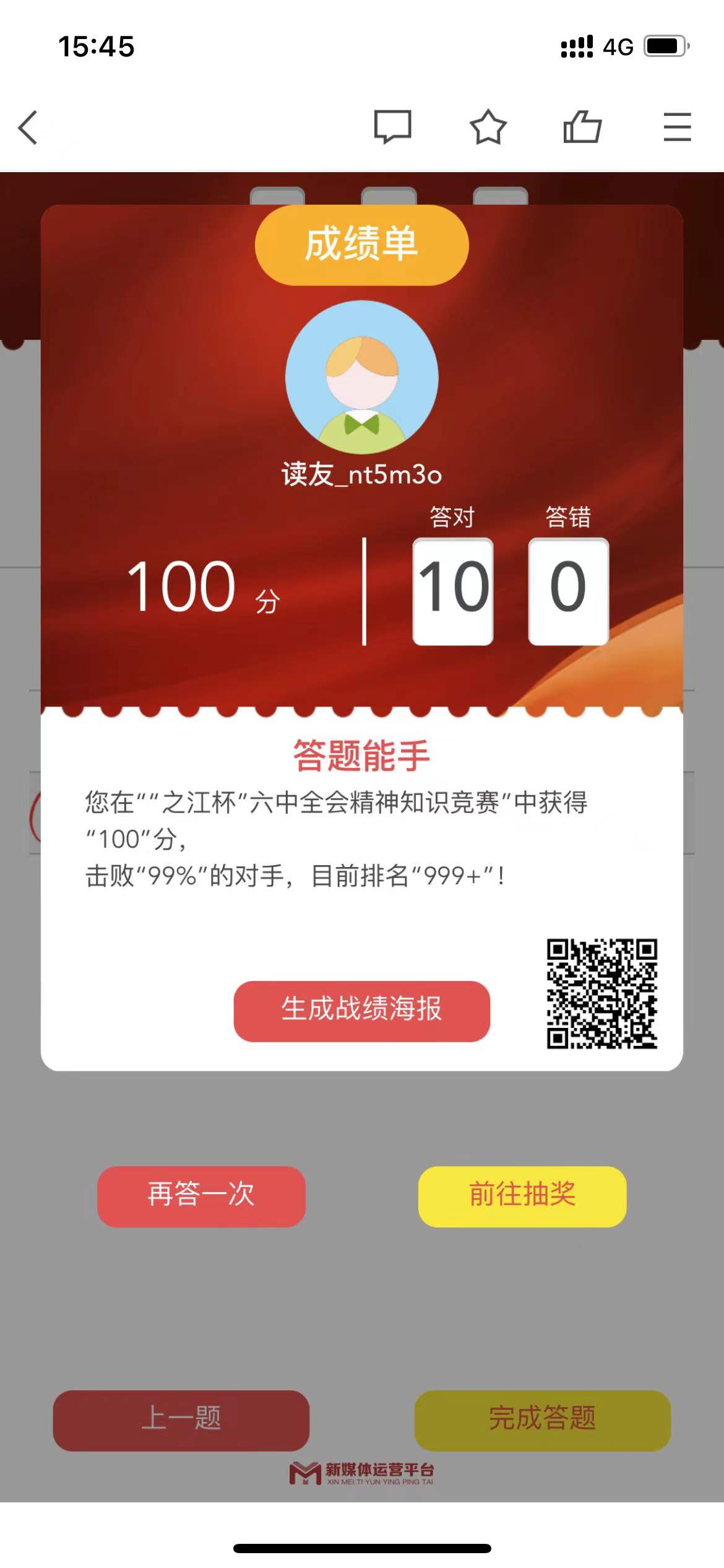 本次知识竞赛采用线上竞答形式,紧扣党的十九届六中全会公报、《中共中央关于党的百年奋斗重大成就和历史经验的决议》等重点内容。支部党员积极响应、热情高涨,掀起了学习十九届六中全会精神的热潮。