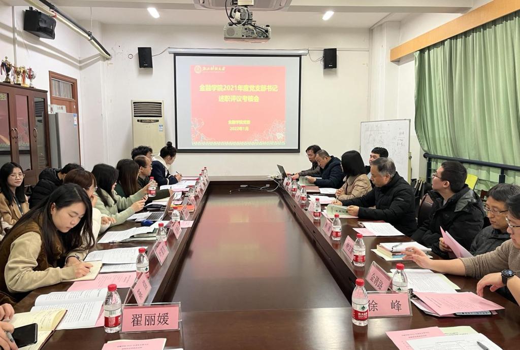 为进一步总结基层党支部建设工作经验,1月6日,金融学院在学院楼422会议室举行2021年度党支部书记述职评议会议学院党委书记蔡国金、副书记谢敏、学院党委委员及各党支部书记党建指导老师参加会议,会议由谢敏主持。