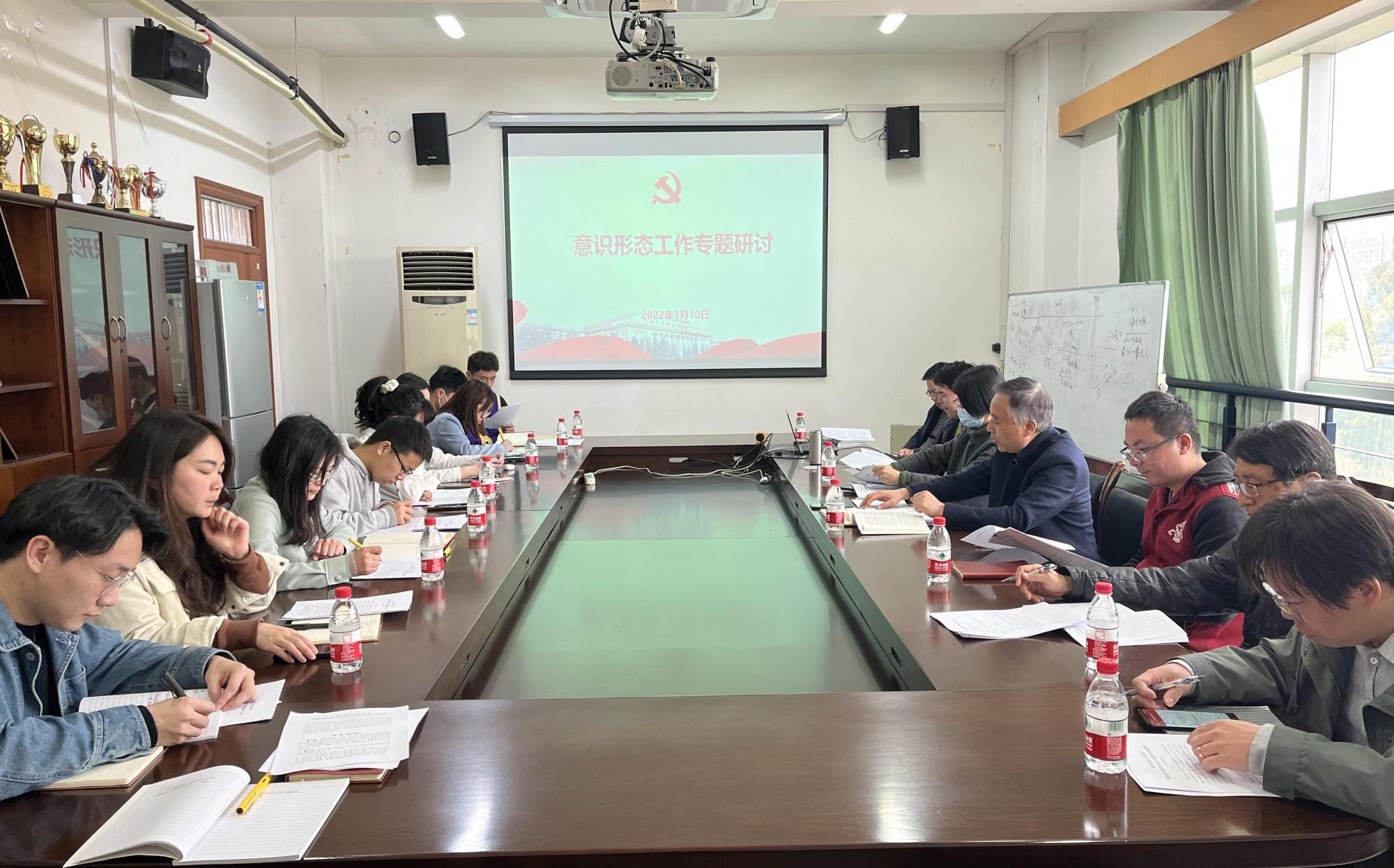 在学院楼422会议室召开意识形态工作专题研讨会,学院党委委员、各党支部书记参加会议。会议由学院党委书记蔡国金主持。