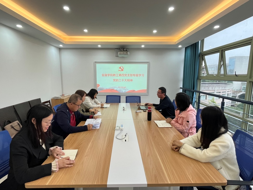 教工第四党支部在学院407B会议室举行党的二十大精神专题学习会,此次会议由支部宣传委员张红主持,学院党委委员、副院长林祺莅临出席。