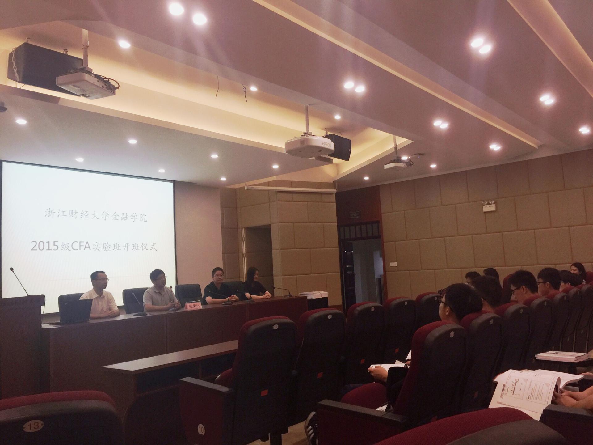 院长陈荣达、高顿财经CFA项目负责人、专业教师等4人出席了本次会议,15级CFA实验班全体同学参加了开班仪式。