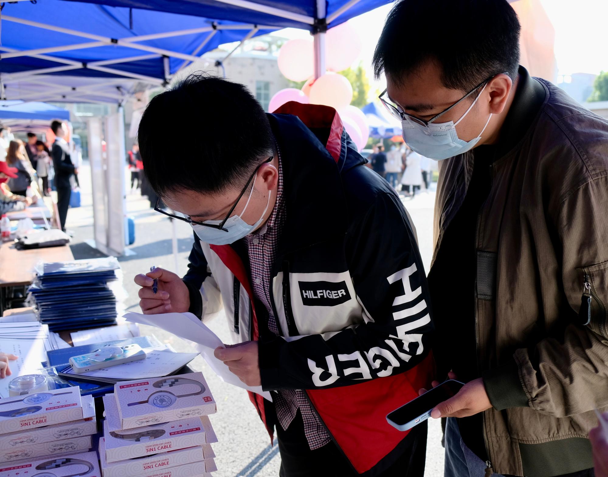 校友返校签到工作有序开展,师生们怀着满腔热情迎接来自五湖四海的校友们返校回家。学院还特为返校校友定制了专属纪念品,小袋子,大温暖;数据线,传能量。