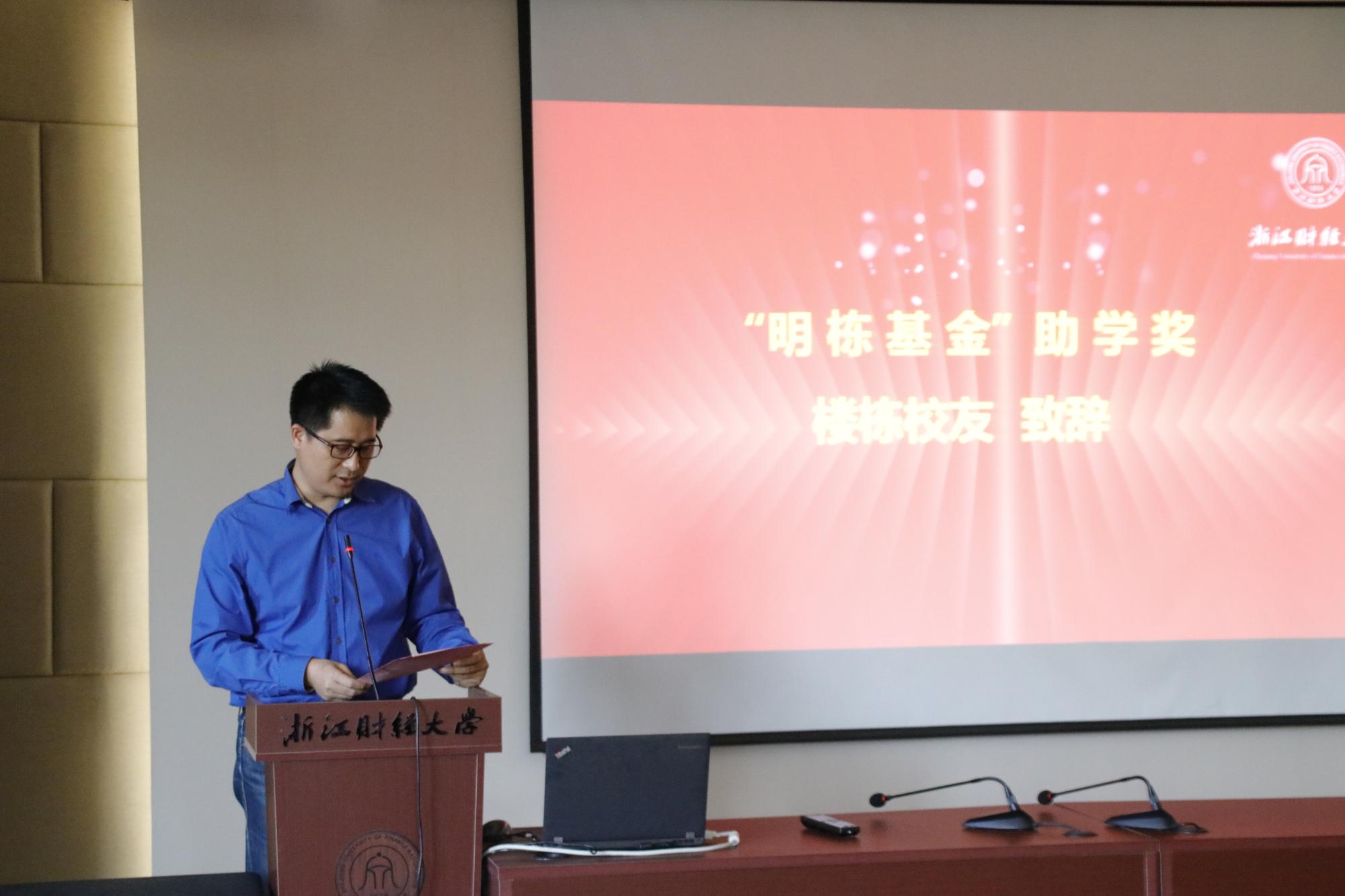的传统与母校的精神深深烙在他心里,如今正用行动回报恩师的哺育,回馈学校的滋养。楼栋校友表示,四年来,看着一批批学生资助落到实处,看着一群群学生受到激励与鼓舞,自己也倍感欣慰。他们阐述了创立“明栋基金”的初心,并鼓励获奖学子能够走上自立自强、成长成才的道路,将“明栋基金”的精神传承和发扬下去。