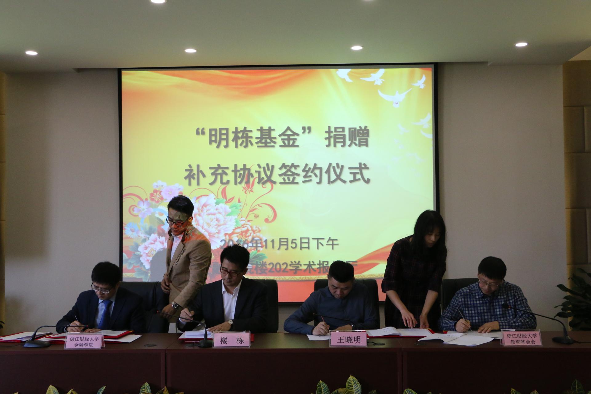 202报告厅顺利举行。王晓明校友、楼栋校友、陈荣达院长、杨健勇副处长共同签署了协议,现场的领导和嘉宾共同见证这一美好时刻。李金昌书记、陈荣达院长、王晓明校友、楼栋校友等出席了“明栋基金”启动仪式,并一起启动了“明栋基金“水晶球。