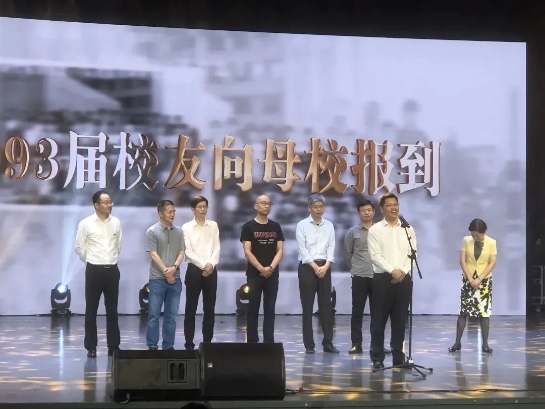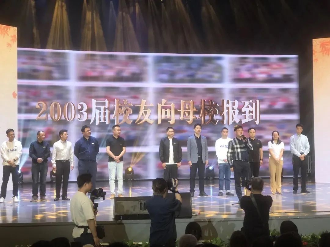 1993届校友、2003届校友、2013届校友参加本次活动,返校各班代表上台向向母校报到,并向老教师们献花、合影留念。