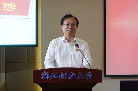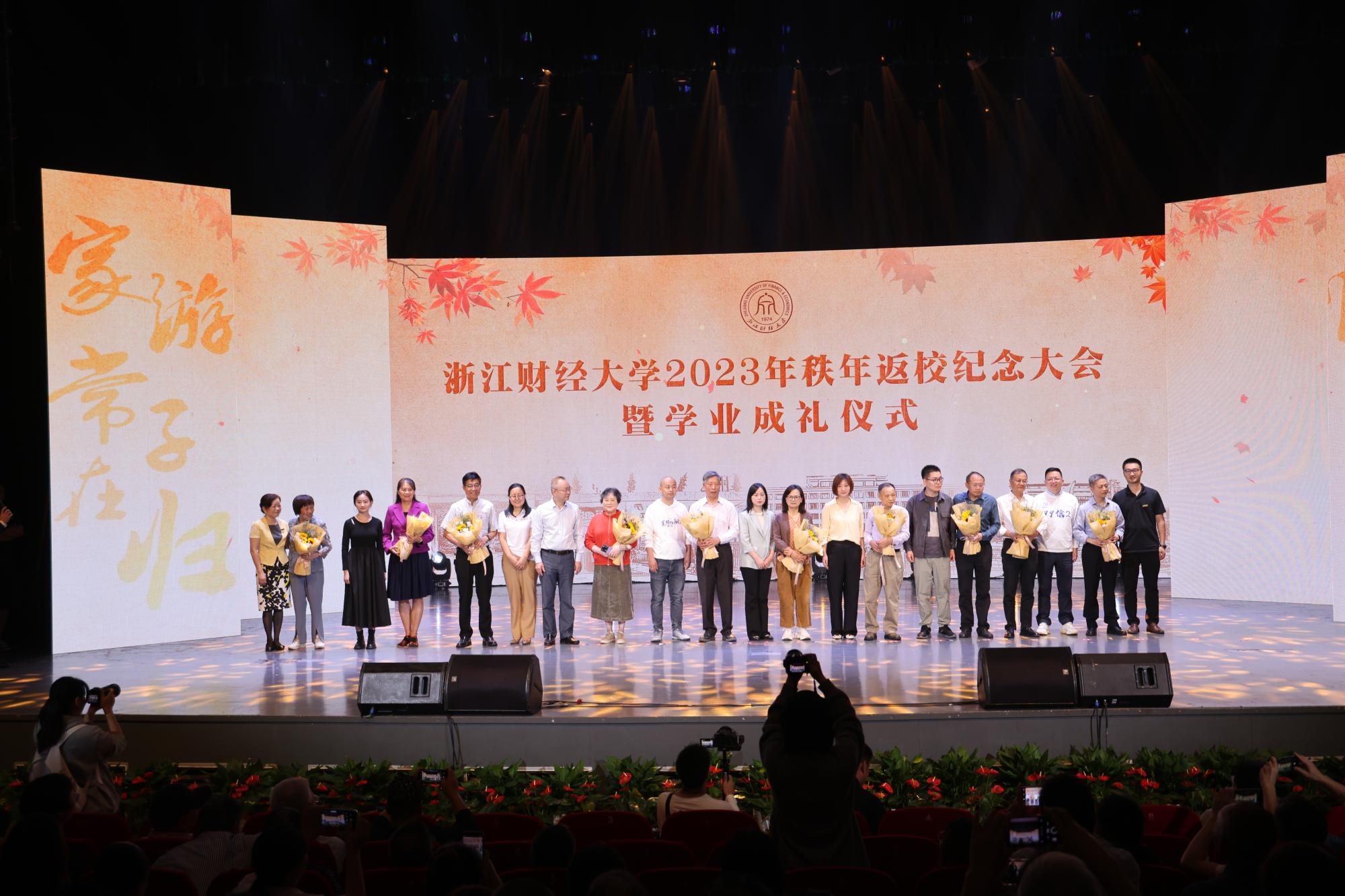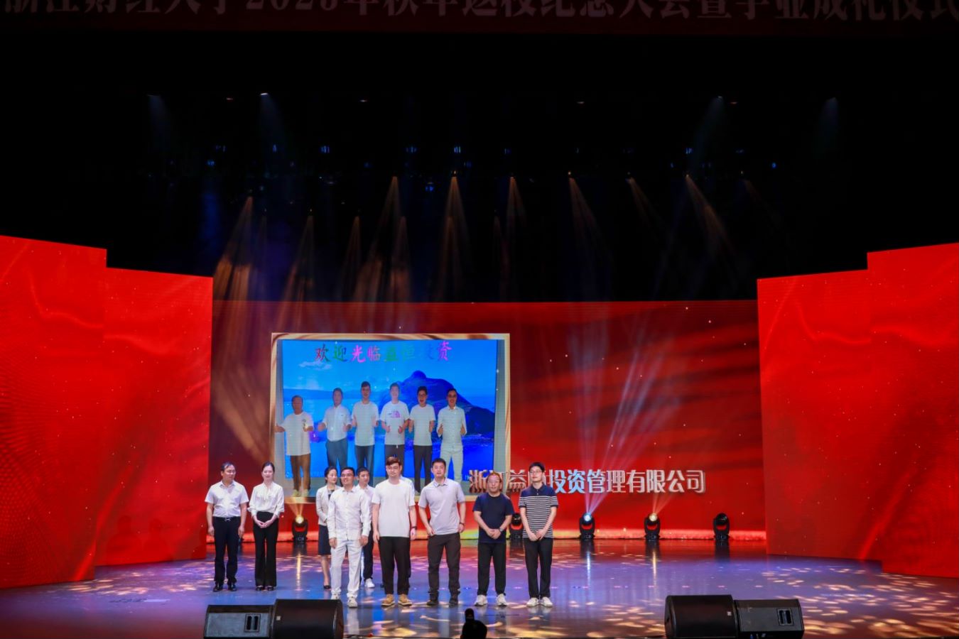 校友返校日系列颁奖大会顺利举行,校党委副书记黄建新,院退休教师、原学院副院长夏红芳,院退休教师徐敏,校社会合作处处长、校友办主任张红英,校党委学工部副部长金国权,校党委研工部副部长林剑,浙江盈阳资产管理股份有限公司创始人、98届校友楼栋,盈阳金融科技学院副院长、99届校友孔繁岗,蓝山投资有限公司总裁助理、“明栋基金”管理委员会秘书长王丽荣,浙江银万斯特投资管理有限公司合伙人简投资总监、05届校友赵峰,浙江盈阳资产管理股份有限公司基金经理、16届校友陈浙平,学院院长王聪聪,院党委书记蔡国金,及学院师生代表参加。颁奖大会由学院党委副书记谢敏主持。