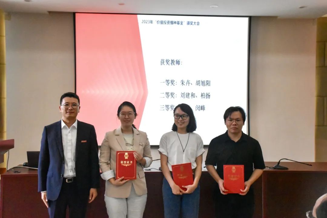 2023年,朴哲范、金骋路、徐建军、邹静等四位优秀教师获得“价值投资播种基金”之“匠人园丁教学科研鼓励奖”;朱卉、胡旭阳、刘建和、柏扬、徐峰、闵峰等六位老师分别获投资类课程建设“基础性课程建设奖”一等奖、二等奖和三等奖;徐峰、胡旭阳、刘建和老师团队获投资类课程建设“阶段性课程建设奖”二等奖;刘硕同学负责的《基于企业现金流进行价值投资的多因子模型实证研究》和徐远扬同学负责的《基于企业韧性度量的估值因子投资增强策略研究》获“价值投资研究专项课题”立项;2022-2023学年,邵绘雯、江文涛、陈小雨、许盼峰、王希韬、胡绮、张议丹、张程茜等8位同学获得“星辰大海投资课程奖”。