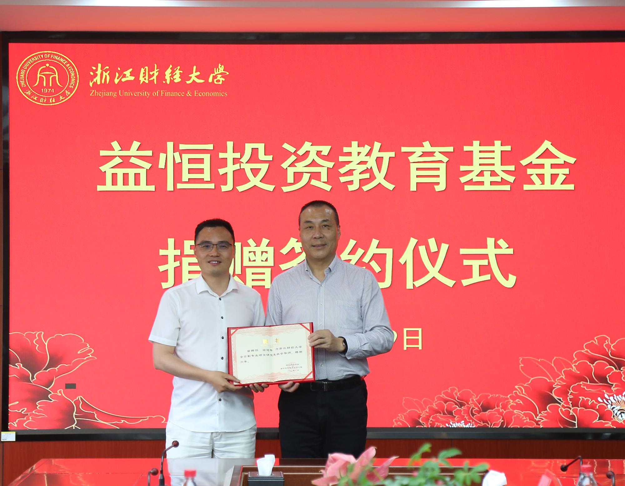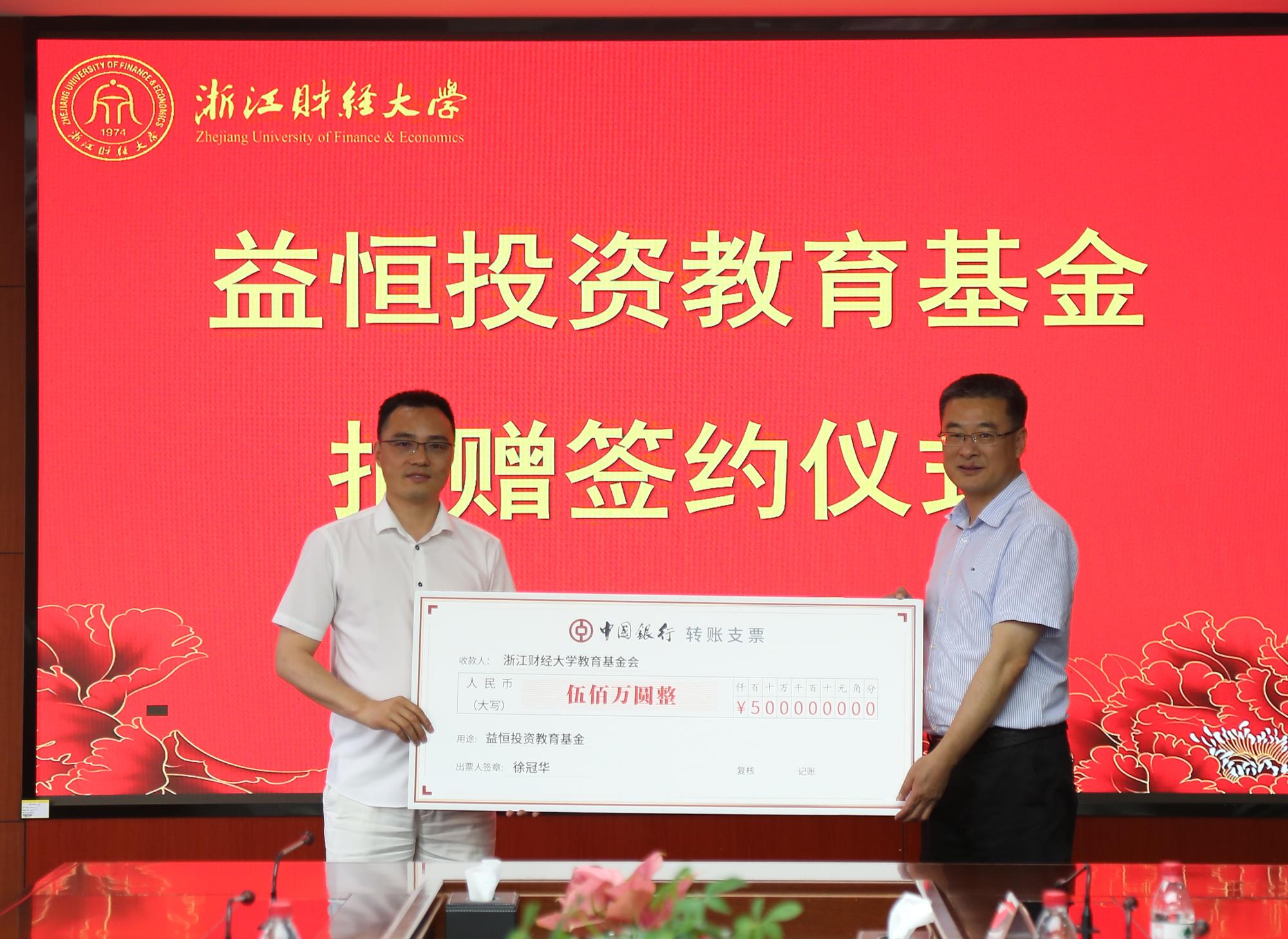 捐赠500万元,设立“益恒投资教育”基金。校党委书记李金昌,党委委员、副校长徐晓东,浙江益恒投资管理有限公司董事长徐冠华、联合创始人吴丹,浙江海达国际文教信息有限公司董事长张坚,浙江银万斯特投资管理有限公司董事长杜飞磊,浙江益恒投资管理有限公司交易总监章永成、研究总监田黄达,党委办公室主任范建锋,社会合作办主任张红英,SF漫画