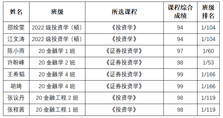 根据《“价值投资播种基金”之“星辰大海投资课程奖”奖学金评审细则》,经学生个人申请,学院学工办审查,“价值投资播种基金”管理委员会同意,共评出2022—2023学年“星辰大海投资课程”奖学金获奖者共8名,具体获奖名单请见下表。现予以公示,公示时间为2023年10月29日—2023年10月31日。如对评审结果有异议,请于10月31日16:00前以书面或口头方式,实名向学院学生工作办公室反映。