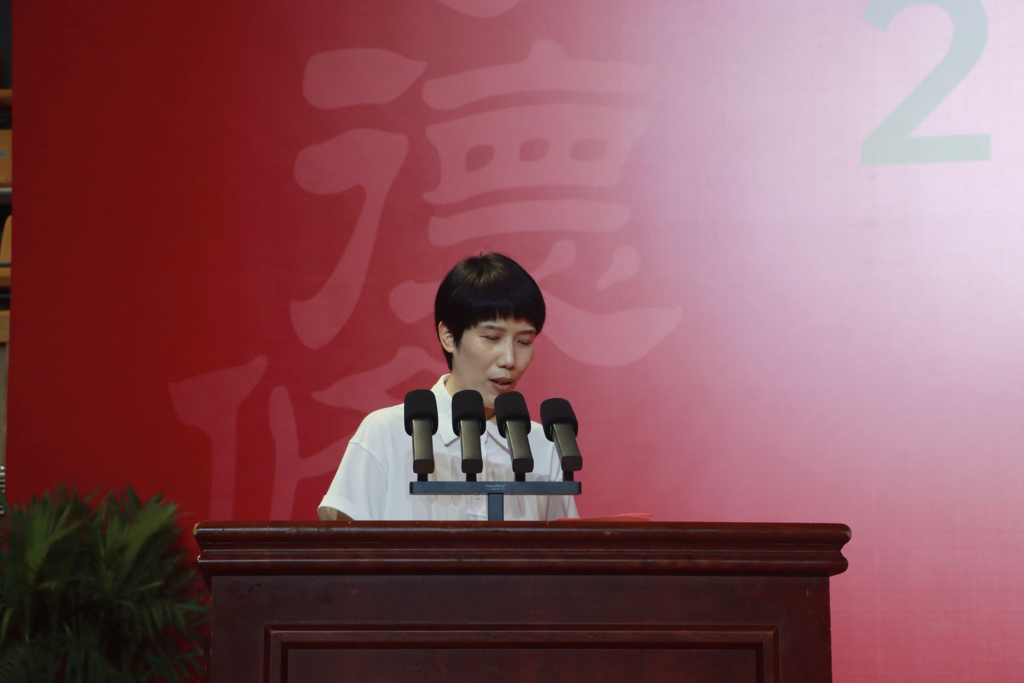 “明栋基金”管理委员会委员、蓝山投资有限公司总裁王柳琳校友代表讲话。作为基金主办方,她对近年来获奖学生的不凡成就感到欣慰,同时也寄予深厚的祝福。她寄语同学们,不忘初心,怀揣梦想,以敢于创新、勇于挑战的奋勇姿态投入到未来的学习和工作中,不畏前方,勇筑梦想。