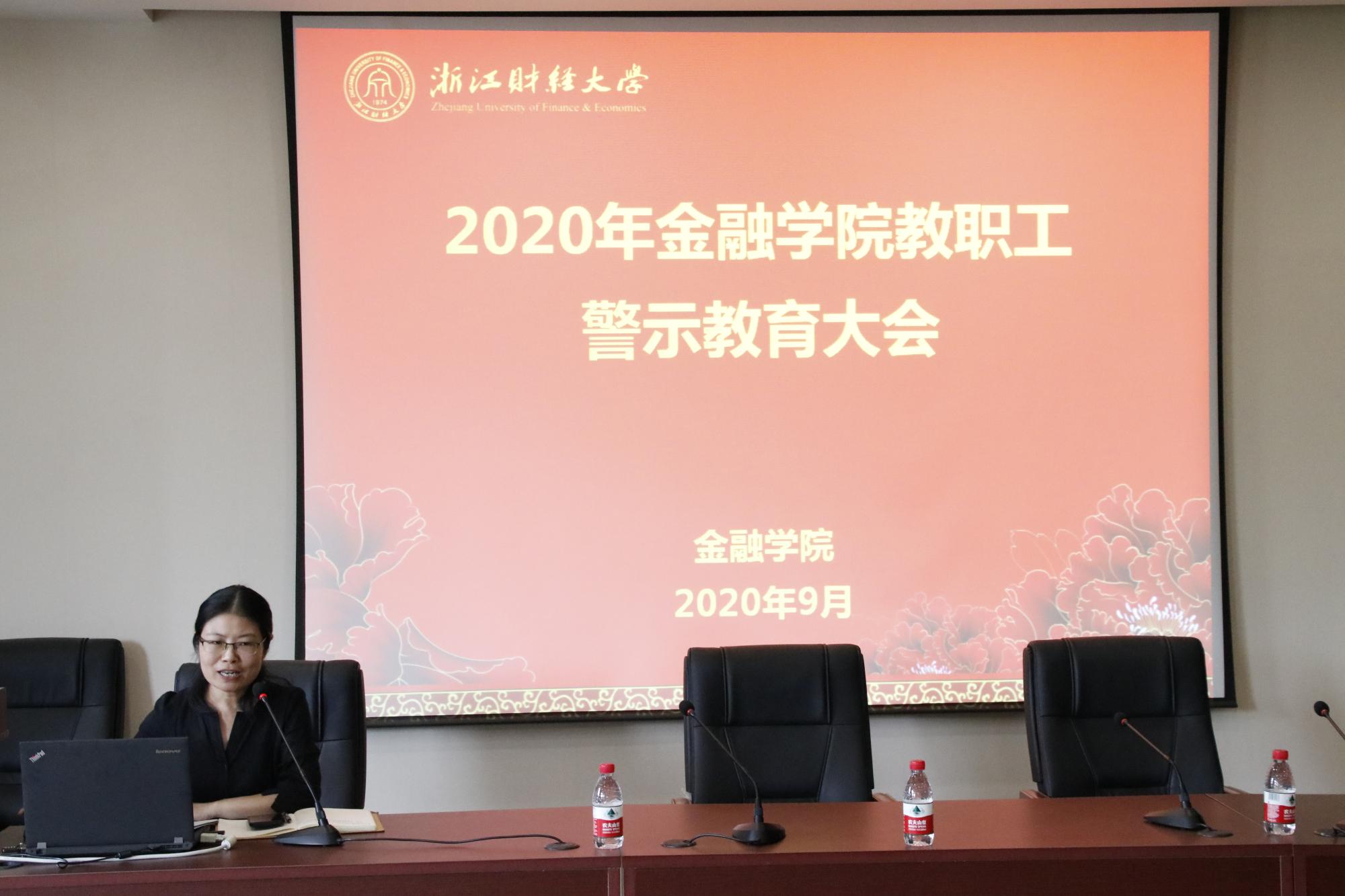 在3-202报告厅召开2020年教职工警示教育大会,全体教职工参加会议,会议由党委副书记、纪委书记谢敏主持。