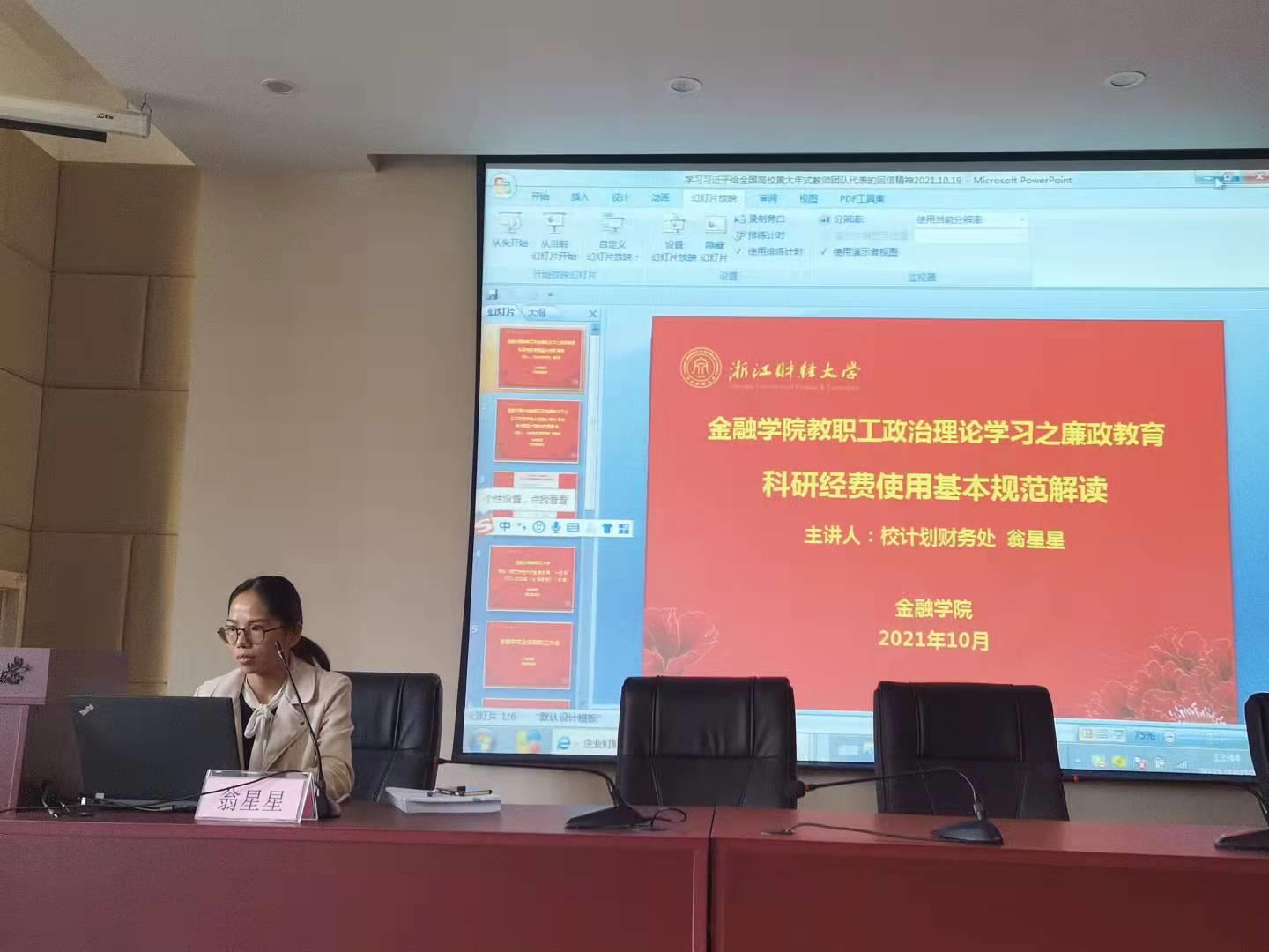 邀请校计划财务处业务骨干翁星星老师开展题为“科研经费使用基本规范”的廉洁教育专题讲座,学院全体教职工参加了学习。