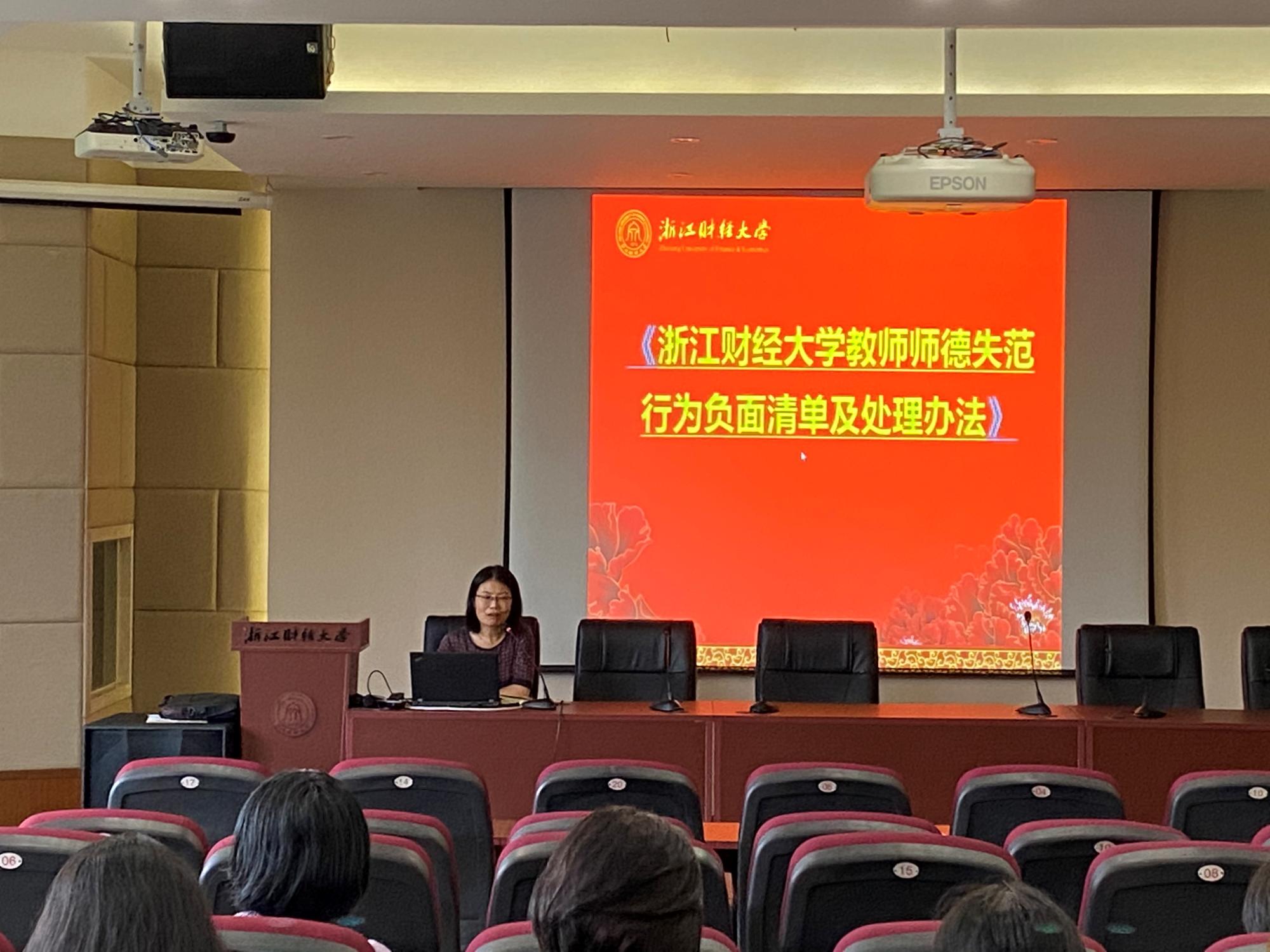 教师师德失范行为负面清单及处理办法。提醒学院全体教职工应注重提升精神境界,提高自我修养,多关爱学生,注重学生思想品德教育,传授知识的同时教育学生如何做人,坚决杜绝损害国家利益、损害师生和学校合法权益的行为;坚决杜绝在教育教学活动或在其它公共舆论平台和公共活动场合中有违背党的路线方针政策的言行;坚决杜绝在科研工作中弄虚作假、抄袭剽窃、篡改侵吞他人学术成果、违规使用科研经费以及滥用学术资源和学术影响;坚决杜绝影响正常教育教学工作的兼职兼薪等行为。