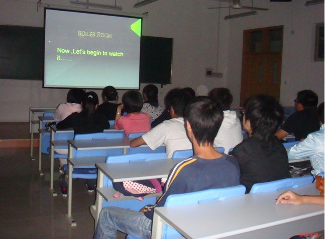 经过学会的精心组织、安排,活动有序进行。由主持人简单介绍、分析,讲解了金融欺诈方面的知识后,同学们开始欣赏影片。期间不少同学评论道:“看了《开水房》,学到了很多。”不错,在场的同学无不为金融欺诈、股市漏洞心寒,是它把人们的生活搞得一团糟,甚至家破人亡。
