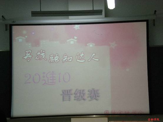 上场晋级赛的现场气氛给同学们留下了深刻印象。和上次一样,在本场晋级赛中参赛选手也都做了充分准备,也有几位选手在部分环节中答对所有选题,迎来全场如雷般的掌声。场外人员也积极参与互动环节,预备的奖品被如数领取完。晋级赛结束后,网络新闻部工作人员对晋级的选手进行了采访,受访选手在06,07,08界均有分布,纷纷表示参加这次活动使他们受益匪浅,充分领会到了国际金融学会所举办的活动的趣味性和知识性。