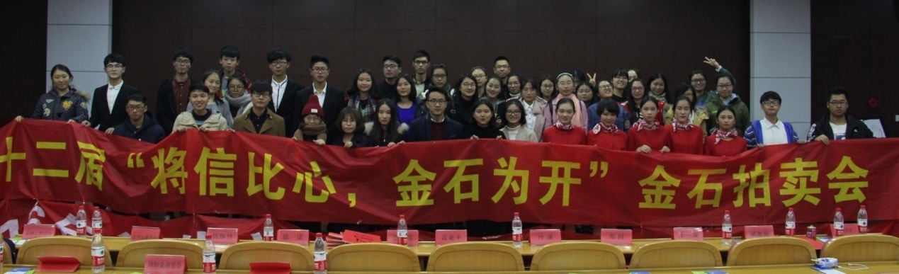 之后金石拍卖会便拉开了序幕。此次拍卖总共分为“一信一意 ,信意永存”、“暖冬财里”和“一人一币,币币汇信”三个主题。拍卖师首先对拍品进行了详细而又诙谐的介绍。场下参与竞拍的同学们都积极出价,场面十分热烈。本次活动与“一元钱工程”相结合,拍卖所得筹款将服务于“一元钱工程”,资助大四贫困生考研和就业。